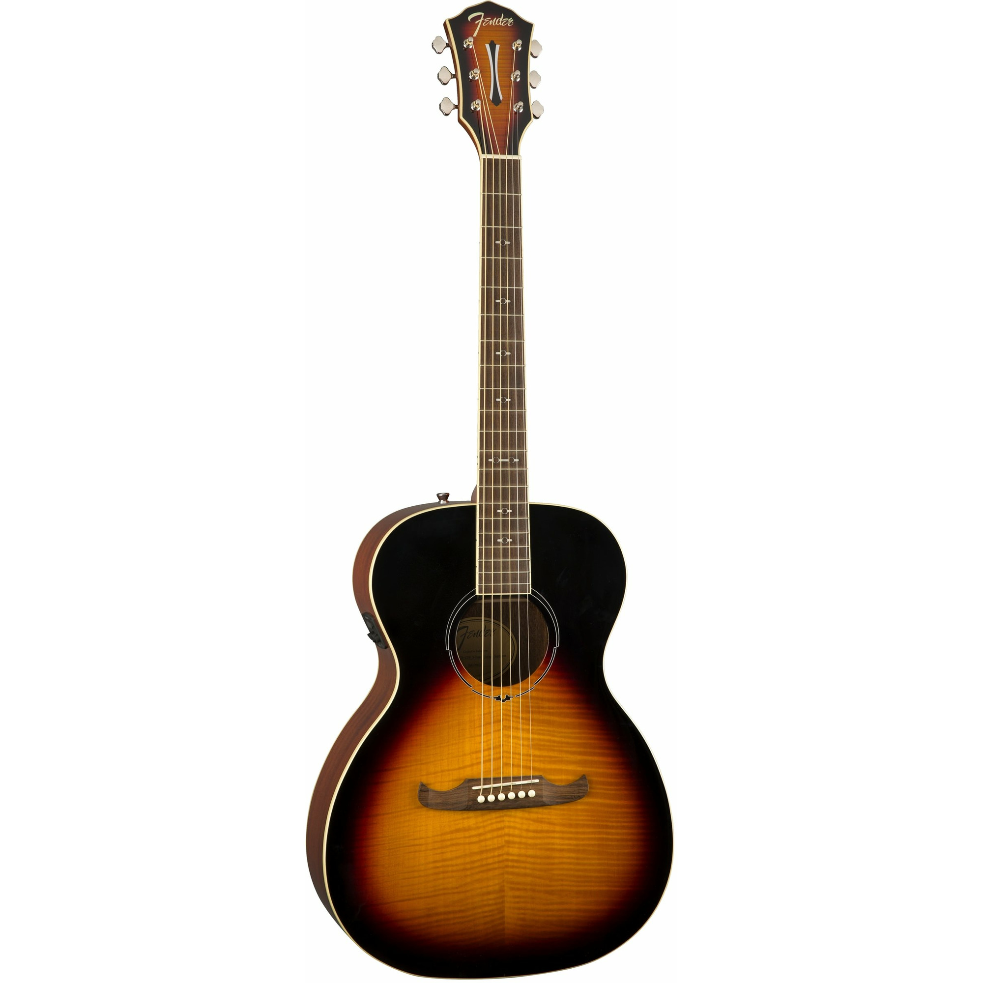 Fender FA-235E Concert 3T Snbrst LR – потрясающе красивая электроакустическая гитара в компактном корпусе концерт от знаменитого американского гитарного бренда. Это прекрасный инструмент с легендарным фендеровским звучанием, доступный по весьма демократичной для гитары такого уровня цене. Характерная черта гитары – эффектная верхняя дека из огненного клена, которая не только придает ей стильный внешний вид, но и позволяет получить звонкий, яркий, чистый звук. Модель представлена в элегантном цвете «трёхцветный санбёрст» с черепаховой окантовкой. Корпус выполнен из ламинированной древесины гревиллеи (лайсвуд), за счет чего он отличается неприхотливостью и прост в уходе. Голова грифа в современном стиле Fender 3+3 в сочетании с бриджем Viking обеспечивают удобство при игре и отличное звучание. FA-235E Concert оснащена высококачественной электроникой Fishman со встроенным тюнером, регулятором громкости и двухполосным эквалайзером, которая обеспечивает прекрасный звук при игре с усилением. Гриф из красного дерева наилучшим образом сочетается с топом из огненного клена и делает звучание более ярким, живым. Модель подходит как для начинающих музыкантов, так и для опытных профессионалов.