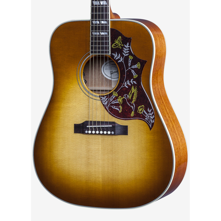 Gibson 2016/2017 Hummingbird Standard Heritage Cherry Sunburst - шестиструнная электроакустическая гитара цвета Heritage Cherry Sunburst. Акустические и электроакустические гитары Gibson пользуются популярностью среди профессионалов и почитателей насыщенного, яркого, узнаваемого звучания. Гитара комплектуется фирменным, утепленным кейсом для транспортировки и хранения гитары. Верхняя дека гитары сделана из массива ели, нижняя дека и обечайка инструмента изготовлена из красного дерева (махагони). Производитель, компания Gibson (США) является известным во всем мире брендом, выпускающим инструменты, ставшие классикой и эталоном звучания на многие годы. Гитара имеет удобный гриф из красного дерева (махагони) с оригинальным округлым профилем и накладкой из палисандра. Инкрустация ладов из перламутра в виде разделённых параллелограммов. В инструмент встроен звукосниматель, модель L.R. Baggs VTC, благодаря которому можно подключить гитару к звукоусиливающей аппаратуре. Бридж гитары из палисандра, колки классического типа - 3 х 3. Электроакустическая гитара GIBSON HUMMINGBIRD предлагает инструмент премиального класса для самых разных музыкальных жанров.