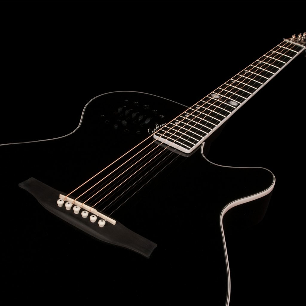 У инструмента двухкамерный корпус из красного дерева, верхняя дека из массива ели, гриф из красного дерева с композитной накладкой Richlite, белая окантовка и знаменитые инкрустированные розы на 12-ом ладу.