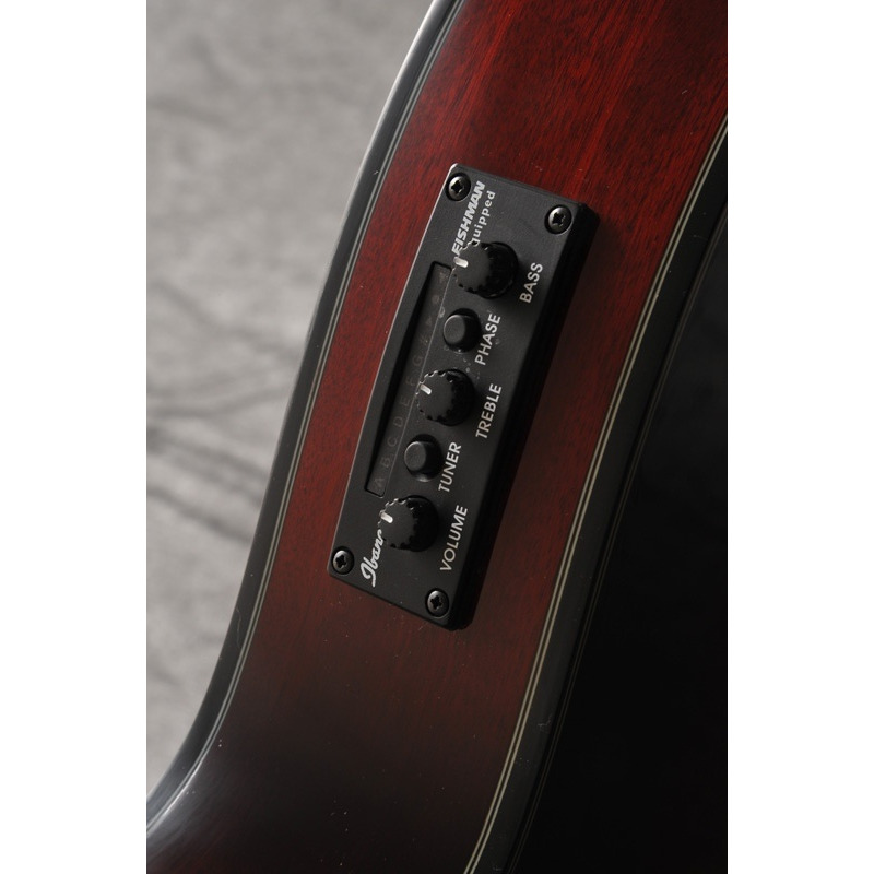 На гитаре установлен звукосниматель Fishman Sonicore и предусилитель Ibanez AEQ 210TF со встороенным тюнером, предоставляющие богатейший выбор настроек звучания.