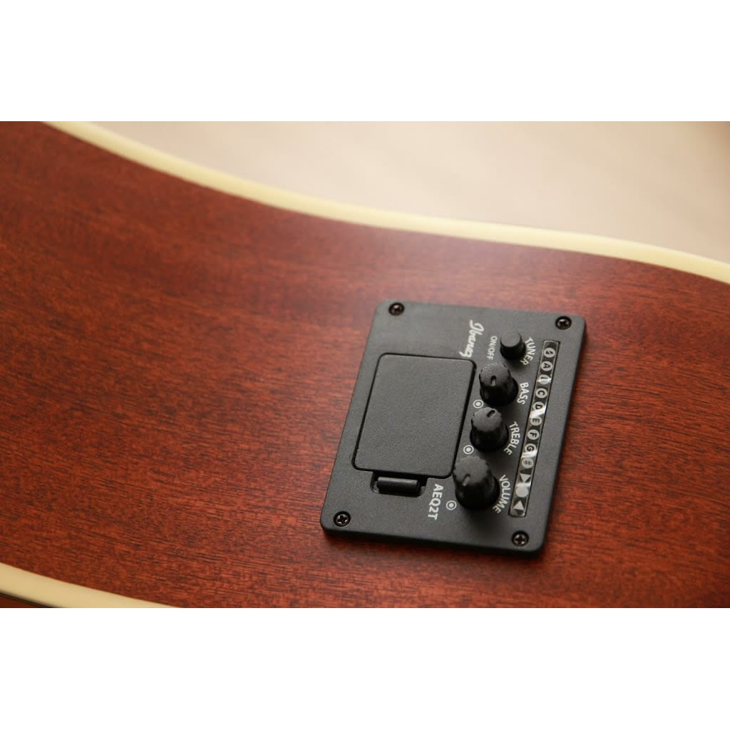 Верхняя дека гитары выполнена из древесины кедра, нижняя дека и обечайка – из красного дерева. Гриф сделан также из красного дерева, накладка на гриф – традиционная палисандровая. 20 ладов инкрустированы классическими точками. Мензура – 650 мм, ширина верхнего порожка 42 мм. Фурнитура PF17ECE-LG - хромированная, литые колки (также хром) расположены симметрично, 3 сверху и 3 снизу. Бридж гитары – из палисандра. Пьезозвукосниматель - собственного производства Ibanez Under Saddle. Инструмент оборудован активным предусилителем Ibanez AEQ-2T со встроенным хроматическим тюнером, двухполосным эквалайзером (Bass, Treble) и удобным крупным регулятором громкости.