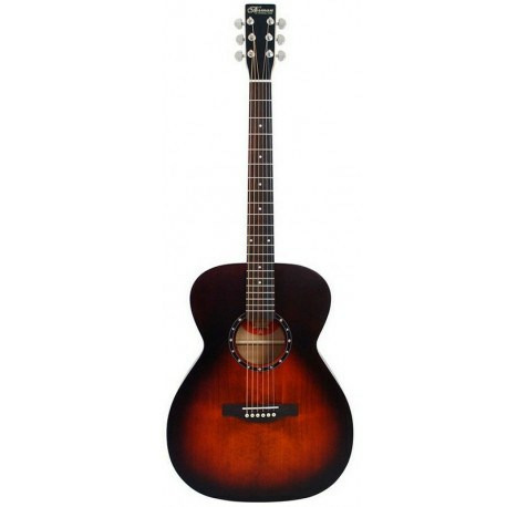 Верхняя дека изготовлена из массива кедра, задняя дека и обечайка дикая вишня, гриф клен серебристый. Форма корпуса концертная. Цвет санберст Burnt Umber. Звукосниматель Fishman Presys с 3-полосным эквалайзером и тюнером.