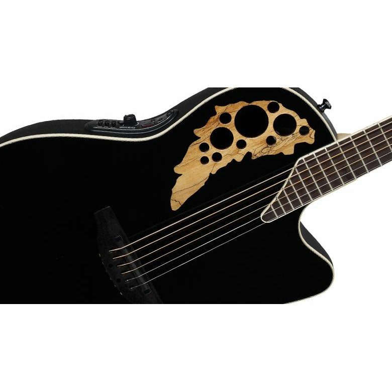 OVATION 1778TX-5GSM – удивительная электроакустическая гитара, которую можно охарактеризовать как максимальный тон и величайший комфорт. Deluxe АА класса верхняя дека из массива ели и легковесные, но высокопрочные ребра жесткости дают огромную звуковую мощность. Ультра тонкая текстурированная эмаль черного цвета позволяет деке свободно резонировать, а звуковые отверстия, расположенные со стороны бас струн композитного корпуса со средней глубины вырезом, усиливают низкочастотную проекцию. Созданный по образу электрогитары, тонкий кленовый гриф предоставляет превосходный сустейн, при этом электроника OP Pro и звукосниматель OCP-1K обеспечивает бескомпромиссное исполнение при подключении, а акустическое звучание порадует насыщенным тоном. Простой в эксплуатации блок предлагает 3-полосный эквалайзер, схему расширения тона, светодиодный индикатор заряда батарейки и хроматический тюнер.