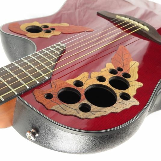 OVATION CE44-RR – электроакустическая гитара с идеальным сочетанием инновационного углепластикового корпуса с цельной верхней декой из ели для сладкого тона с соответствующим потрясающим видом. Он прочный и является отличной альтернативой деревянным нижним декам и обечайкам, а также его гладкая внутренняя поверхность специально разработана для увеличения отражения звука. Плюс его средняя глубина помогает усилить проекцию и тональную насыщенность, при этом невероятно удобен для маленьких гитаристов. Ovation была первой компанией, которая представила звукосниматель и предусилитель в одной акустической гитаре, по сути изобрела новый инструмент. CE44-RR оборудована OP-4BT преампом, имеющим регулятор +/-12 дБ для настройки ВЧ/СЧ/НЧ, встроенный тюнер, позволяющий оставаться всегда в гармонии и даже индикатор статуса батарейки.