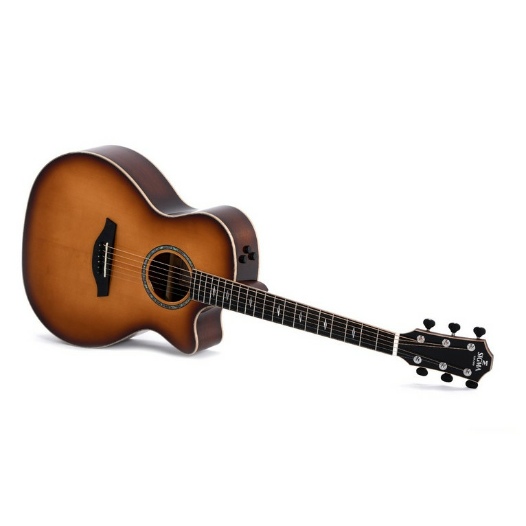 Sigma GBCE-3-SB+ - еще одно дополнение в линейку электроакустических гитар 2018 года, которое характеризуется Grand OM-14 Fret корпусом с удобным профилем выреза, высококачественной электроникой Fishman Flex Plus, натуральными порожками и потрясающим внешним видом цвета санберст. Будучи идеально подходящей для выступающих и сочиняющих песни гитаристов, она великолепно создана из массива альпийской ели в топе и африканского черного дерева, которые совместно производят универсальный, четкий и мощный звук в сочетании с богатой, резонансной теплотой и превосходным откликом. Еще больше резонанса и сустейна добавляют порожки из натуральной кости, а махагоновый гриф с накладкой из микарты предлагает быстрый и динамичный отклик, а также благодаря низкому профилю максимальный комфорт и наилучший захват в любой позиции. Кроме того, форма корпуса Grand OM-14 Fret с вырезом по размерам похожа на гитары Auditorium, что делает эту электроакустику многоцелевой с легким доступом к верхним ладам. Плюс отзывчивая система электроники Fishman Flex Plus позволяет каждому гитаристу настроить свой усиленный звук по своему желанию с помощью элегантных регуляторов громкости, низких и высоких частот.