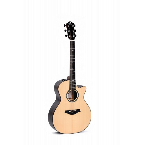 Благодаря корпусу из массива альпийской ели в верхней деке и зирикоте в нижней/обечайках, она производит отчетливый, универсальный и мощный звук в сочетании с богатым тоном, сильным и глубоким басом, а также яркими высокими частотами. При этом натуральные порожки добавляют идеальное количество резонанса и сустейна в общее звучание. Grand OM-14 Fret с вырезом корпус напоминает гитары auditorium, таким образом, получается многоцелевой инструмент с легким доступом к высоким ладам. И, наконец, с помощью элегантных ручек электроники Fishman Flex Plus можно в считанные минуты добиться подходящего звука для исполнения с подключением.