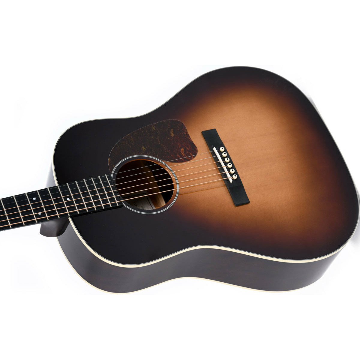 Благодаря цельному топу из массива сихтинской ели и махагоновой нижней деке с обечайками, она производит универсальный звук, отзывчивый и безупречно подходящий к многочисленным игровым стилям, а также способна соответствовать практически всем жанрам музыки. Тон этой гитары богатый, насыщенный и резонансный с четкой артикуляцией и широким динамическим диапазоном. Для еще более отличительного характера звучания, на нее установлены из натуральной кости порожки, предоставляющие дополнительный резонанс и сустейн, а также позволяющие гитаре дольше держать строй для возможности более продолжительного исполнения без подстройки. Fishman Sonitone электроника включает установленный в резонаторное отверстие предусилитель с основными регуляторами для быстрой настройки громкости и тона, подходящих для живого выступления и репетиции. С потрясающей отделкой цвета санберст и винтажными декоративными деталями, JM-SG45+ роскошная для сцены электроакустическая гитара.