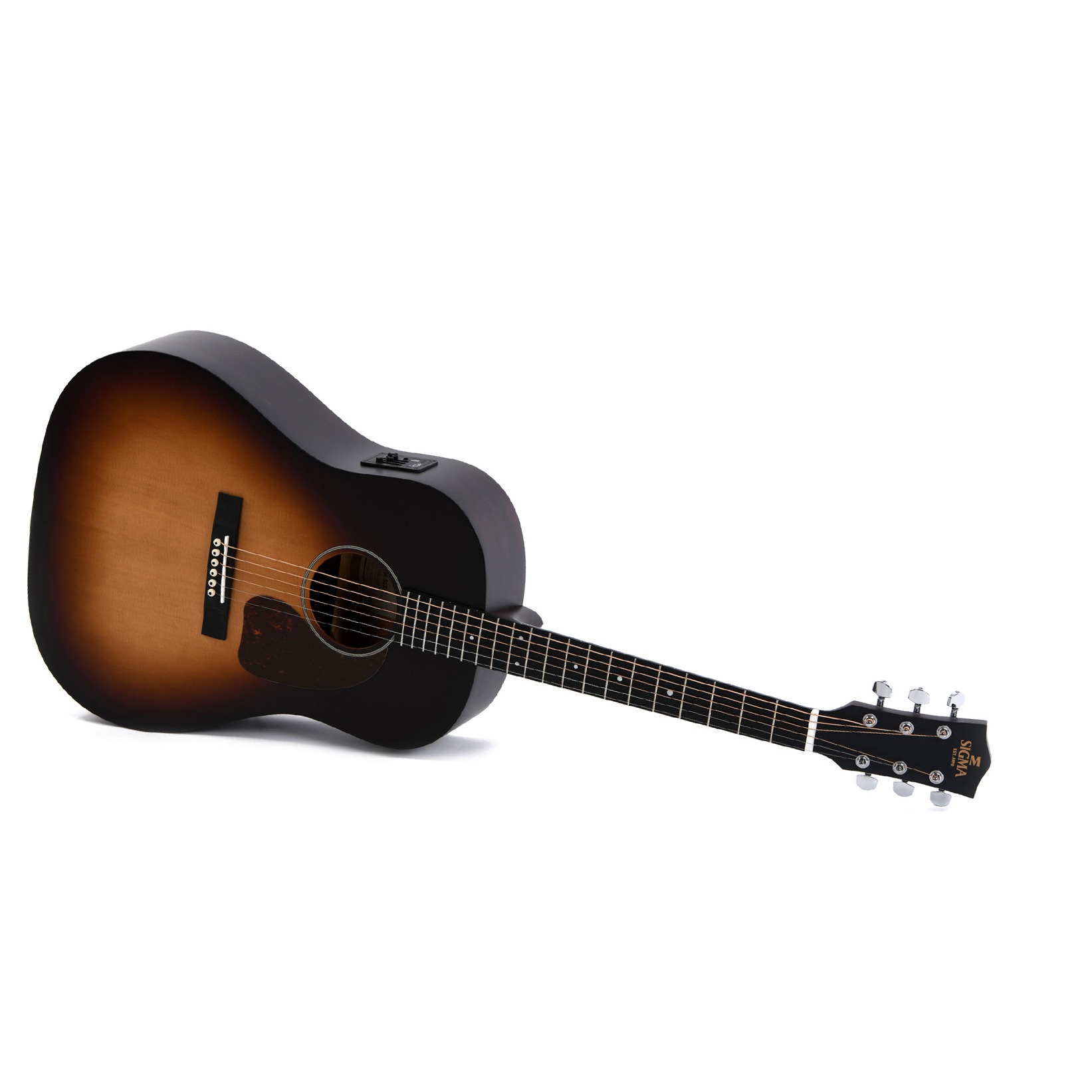 Верхняя дека Sigma JM-SGE+ сделана из цельной древесины ситхинской ели, такой материал придаёт инструменту прекрасные акустические свойства при любом стиле игры, позволяет получить отличное звучание как низких, так и верхних частот. Особенность представленной модели - нижняя дека и обечайка выполнены из красного дерева. Удобный низкопрофильный гриф гитары – также из красного дерева. Накладка – микарта, инкрустирована классическими точками. Мензура – 628 миллиметров (24,75 дюйма). Гитара оснащена качественной электроникой собственного производства Sigma со встроенным тюнером. Порожек и седло – из натуральной кости. Литые хромированные колки обеспечивают стабильность строя. Гитара стильно выглядит в классическом цвете санбёрст со сверхтонким покрытием и черепаховым пикгардом. На гитаре установлены струны D´Addario EXP16.