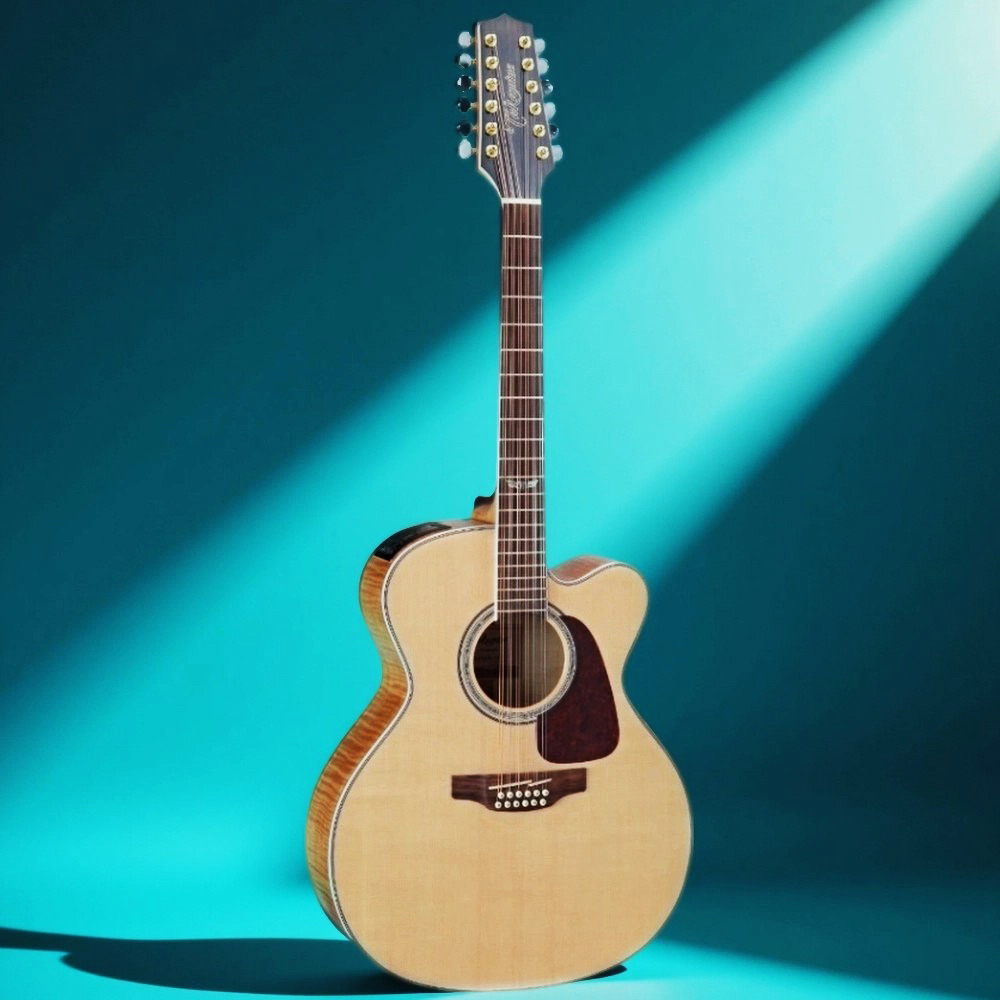 Takamine G70 SERIES GJ72CE-12NAT 12-ти струнная электроакустическая гитара (концертная), имея в своей конструкции большую деку с массивом из ели в топе, помимо прекрасного внешнего вида и акустического звука, предлагает гитаристу электронику премиального качества, что несомненно отразиться на вашем выступлении на сцене. Дека гитары сделана из огненного клена, за счет чего гитара GJ72CE выдает такой объемный и качественный звук, какого и ждут гитаристы от концертной 12ти струнной гитары джамбо. Несмотря на форму гитары, махагониевый гриф остается тонким, что в купе с палисандровой накладкой на гриф с радиусом в 12 дюймов предлагает высокий уровень комфорта при игре на данном инструменте. Гитара оснащена преампом Takamine TK-40D со встроенным тюнером, 3-х полосным эквалайзером, гейн-контролем, переключателем среднего диапазона частот и отсечкой нижних суб-частот.