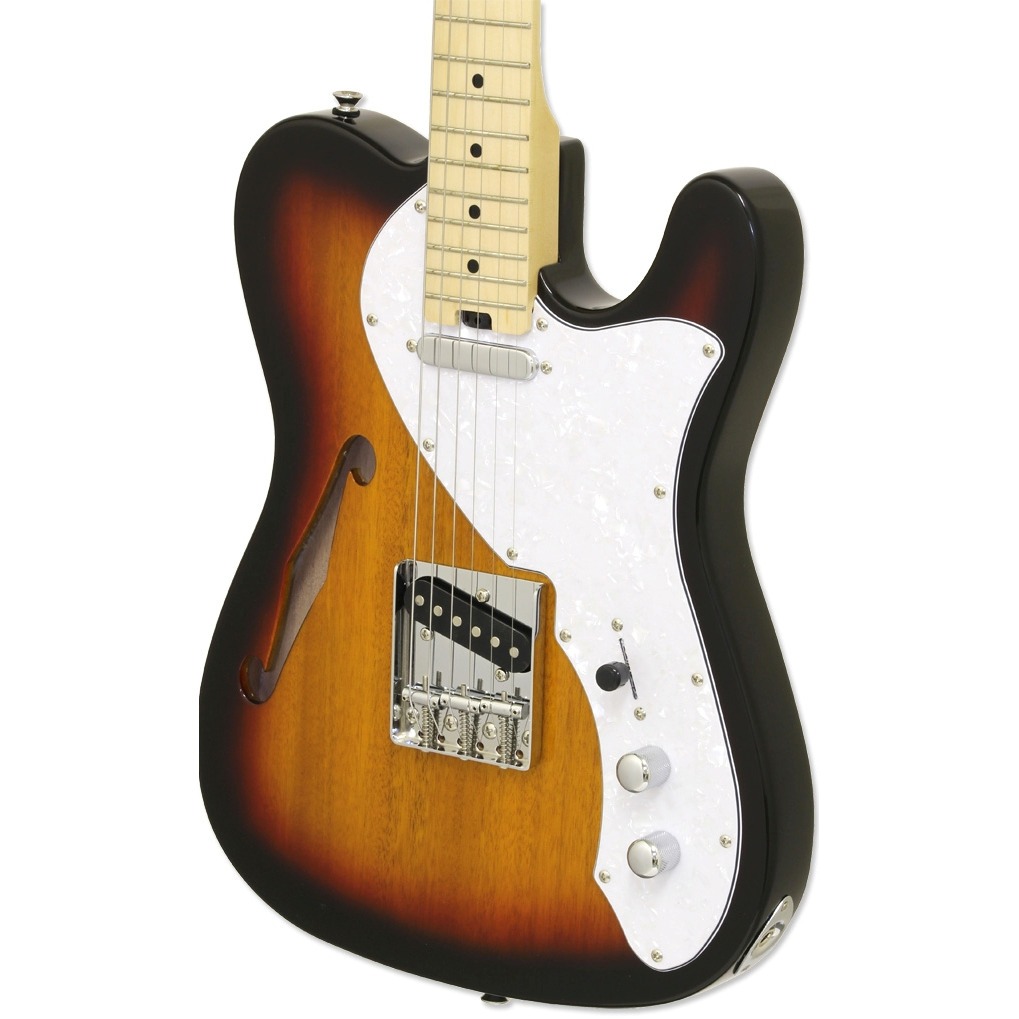 Aria 615-TL Modern Classics - электрогитара в корпусе «телекастер» серии 615 с винтажным внешним видом и традиционным звуком, сочетающая в себе модерновые аспекты и современные функции. Инструмент характеризуется глянцевой отделкой корпуса, грифом из одного куска клена с болтовым креплением и накладкой из клена, полу-полым корпусом, выполненным из окуме. У гитары 22 лада, длина мензуры – 648 мм (25,5"). Звукоснимателями установлены два сингла: CS-1 и OS-1. Темброблок включает в себя регулятор громкости, регулятор тона, трехпозиционный переключатель звукоснимателей. Струнодержатель – VTL-1C, фурнитура хромированная.