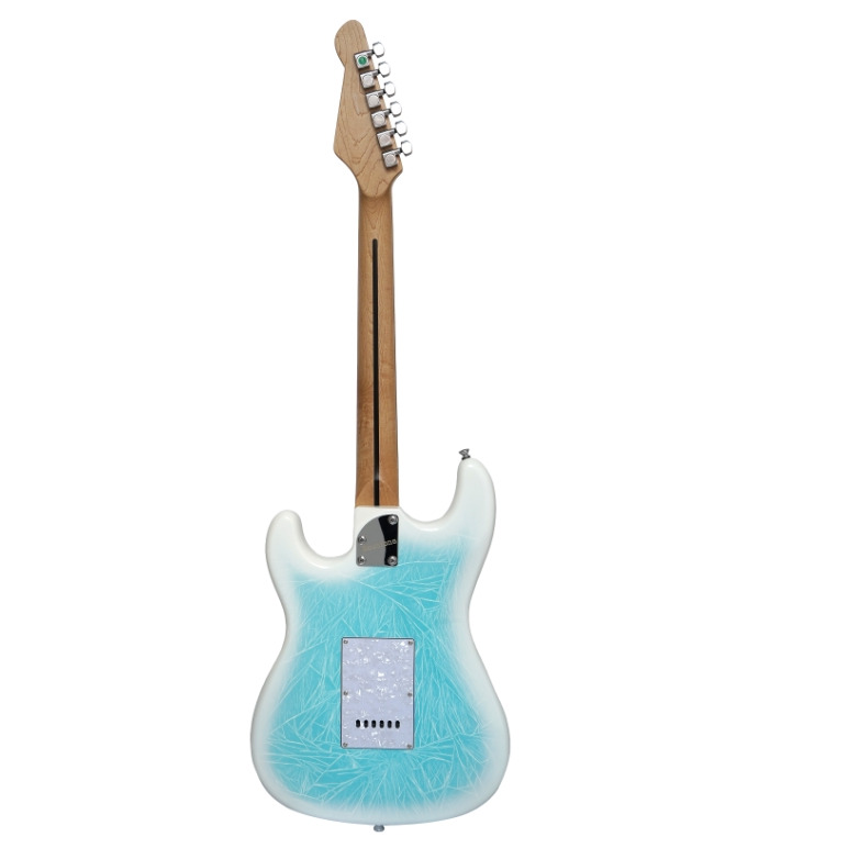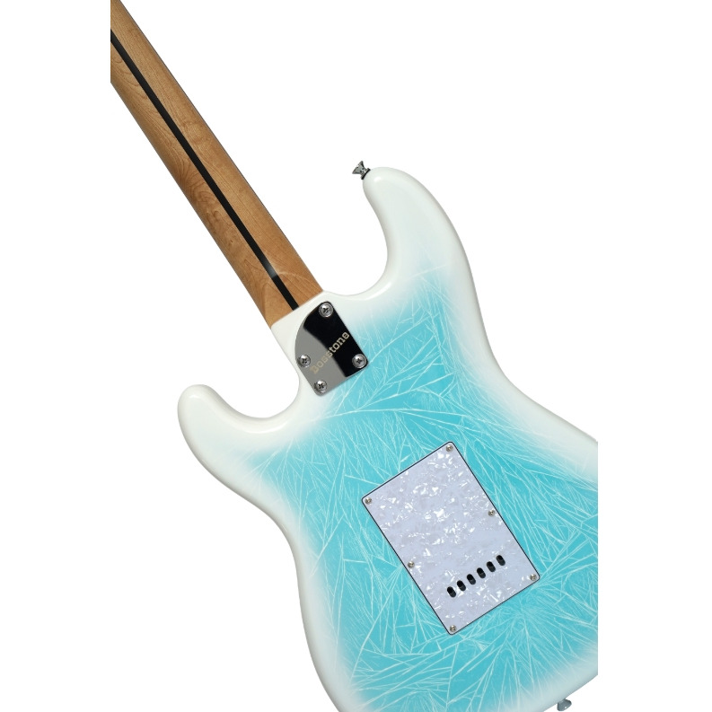 Электрическая гитара для профессиональной игры. Корпус из тополя обеспечивает насыщенный звук, а гриф из карамелизованного клёна с мензурой 25,5" (648 мм) гарантирует комфортную игру. Эргономичный профиль грифа типа «С» с толщиной 22 мм на первом ладу и 23 мм на двенадцатом обеспечивает удобство при длительных выступлениях. 22 скруглённых лада и радиус накладки 14" (355 мм) создают идеальные условия для исполнения как ритм-, так и соло-партий. Три сингла Alnico Little Giant SSF-1 в сочетании с пятипозиционным переключателем, регуляторами громкости и двумя ручками тембра позволяют добиться разнообразных звуковых оттенков. Система тремоло и двойной регулируемый анкер с 4 мм болтом обеспечивают стабильность настройки. Гитара выполнена в стильном цвете Frost с хромированной фурнитурой, что придаёт инструменту современный внешний вид.