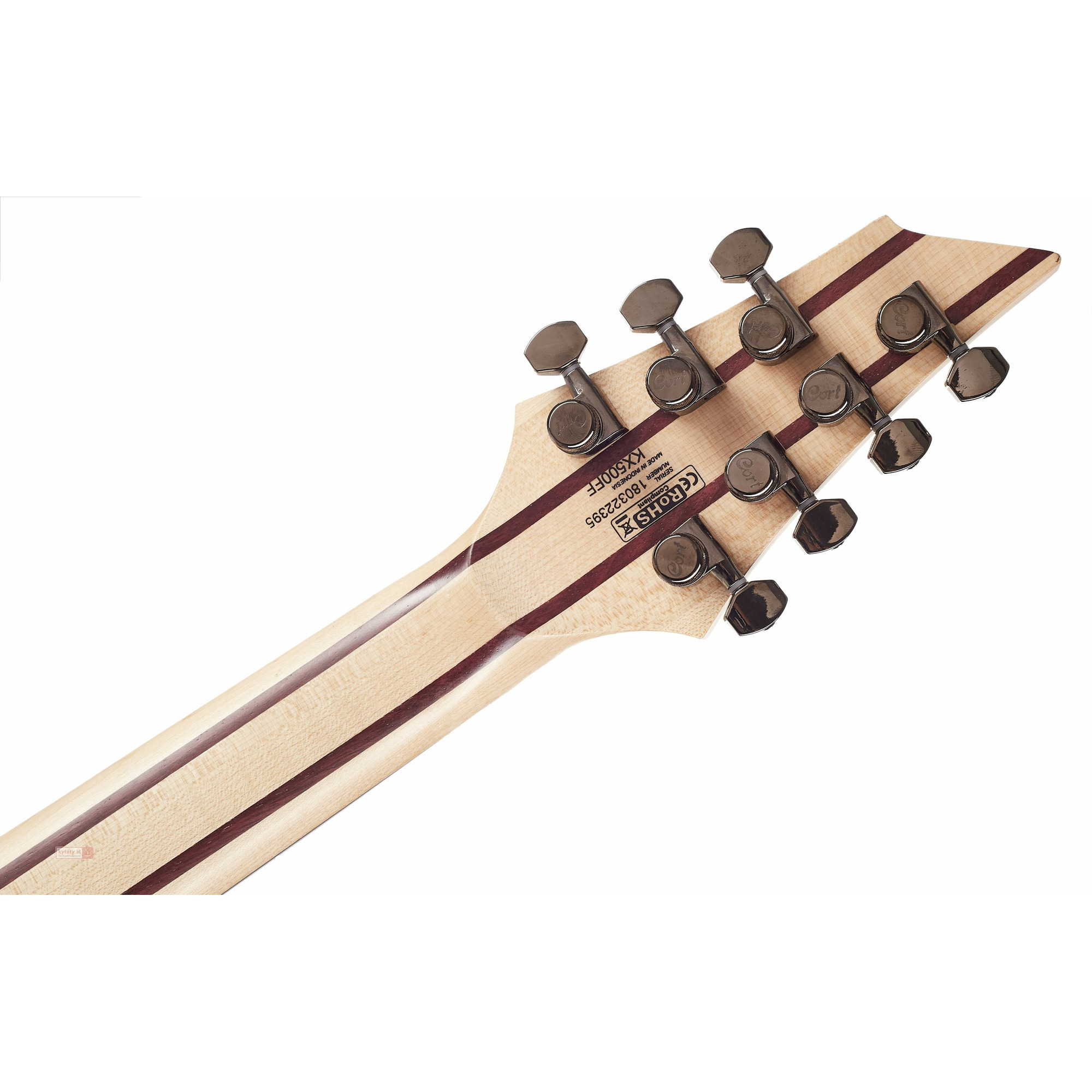 Модель гитары KX500MS - это уникальный (25.5"~27") мультимензурный инструмент, оснащенный активными звукоснимателями хамбакерами EMG 707, установленными под углом к струнам. В конструкции гитары применены редкие породы древесины и эксклюзивная механика Инструмент KX500FF прекрасно подойдет практически для всех музыкальных жанров, от металличекого рока до камерного джаза.