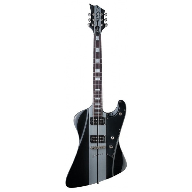 DBZ DIAMOND HFRST-BKSS Hailfire Black/Silver Stripes - шестиструнная электрогитара DBZ DIAMOND HFRST-BKSS Hailfire Black/Silver Stripes имеет корпус, изготовленный из древесины красного дерева. Гриф выполнен из массива древесины махагона. Накладка на гриф изготовлена из массива палисандрового дерева. К корпусу гриф крепится при помощи клея. Гитара имеет двадцать два лада. Мензура имеет длину равную двадцати четырем дюймам. Колки обычные Grover Электронное оборудование представлено оригинальными звукоснимателями DBZ Custom R15/N9C и темброблоком (громкость, тон, трехпозиционный переключатель). Бридж типа тюноматик.