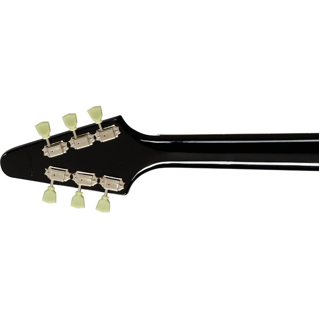 Epiphone Flying V из новой коллекции воссоздает ультра-редкую классику 1958 года с парой хамбакеров Epiphone ProBucker для этого старинного тона. Струны сквозь корпус, колки Epiphone Vintage Deluxe и логотип Epiphone с винтажным орнаментом на головке грифа. Эта модель вдохновлена оригинальным Gibson и также имеет закругленный гриф для комфортной игры, порожек GraphTech NuBone, проводку в винтажном стиле и потенциометры CTS.