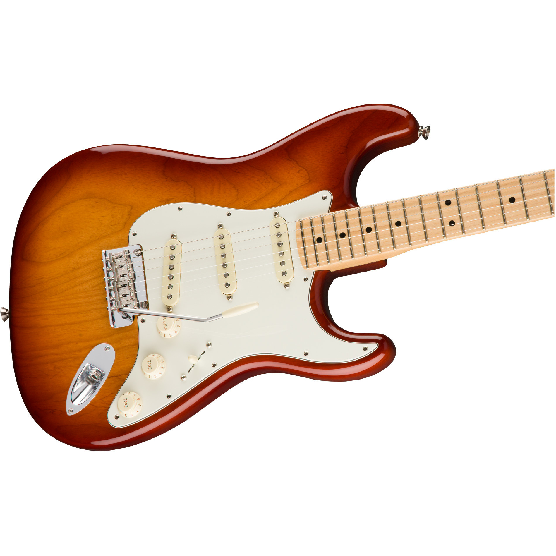 Новые звукосниматели V-Mod, разработанные легендарным мастером Тимом Шоу, специально сконфигурированы каждый для своей позиции. В них используются алнико-магниты различных типов, что позволяет лучше передавать нюансы звучания каждой струны, сохраняя при этом узнаваемое звучание Fender. Благодаря новому тонкомпенсирующему контуру, при работе ручкой громкости звук гитары всегда остается чистым и прозрачным. Новый профиль грифа Modern „Deep C“ удобно ложится в руку, а узкие высокие лады (narrow-tall) облегчают подтяжку струны и улучшают интонирование при исполнении аккордов.