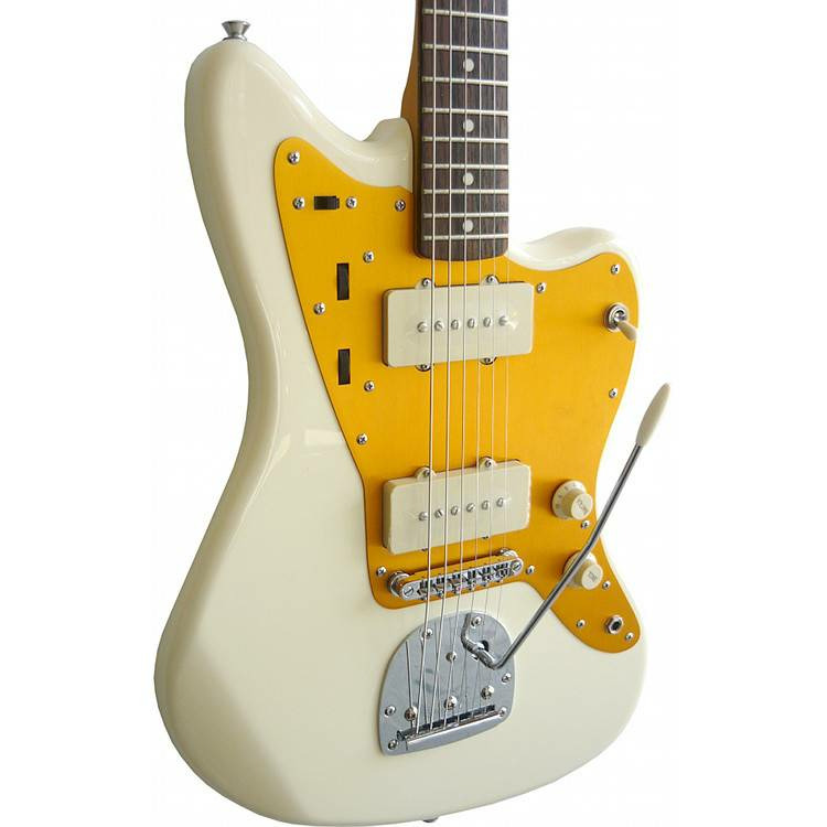 Корпус электрогитары J Mascis Jazzmaster сделан из липы, коеновый гриф имеет «С» - образный профиль, накладку из палисандра с 9.5- дюймовым радиусом и 21 ладом джамбо. Также на борту у этой гитары два сингловых звукоснимателя Jazzmaster pickups, регулируемых трехпозиционным звукоснимателем, и двойной переключатель звукового контура. Корпус украшает позолоченный пикгард из анодированного алюминия, винтажные белые элементы из пластика (ручки, регуляторы и крышки звукоснимателей). Завершают образ бридж Adjusto-Matic bridge с винтажным плавающим струнодержателем, винтажные колки, хромированная фурнитра, завершающее покрытие состаренного белого цвета и сигнатура Джея Маскиса на задней части большой головки грифа в стиле 60-ых годов.