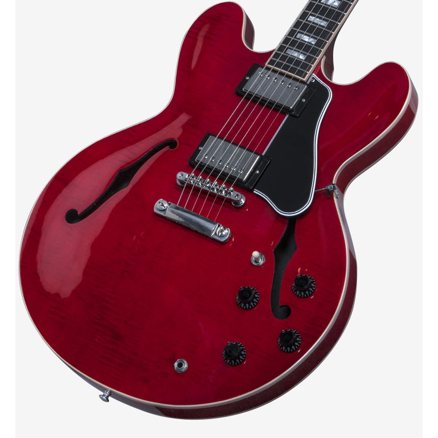 Gibson 2016 MEMPHIS ES-335 FIGURED CHERRY полуакустическая электрогитара. С 1958 года и на протяжении всего периода легендарной славы этой модели лишь немногие ES-335 имели топ из фигурного клена. В 2016-м году Gibson Memphis решили вернуть элегантность и экзотический внешний вид своей легендарной полуакустической гитаре. Модель 2016 года обладает исторически оригинальным анкерным стержнем, звукоснимателями Burstbacker в стиле оригинальных PAF, а также несколько измененным профилем грифа для увеличения допустимой нагрузки на гриф и комфорта при игре.