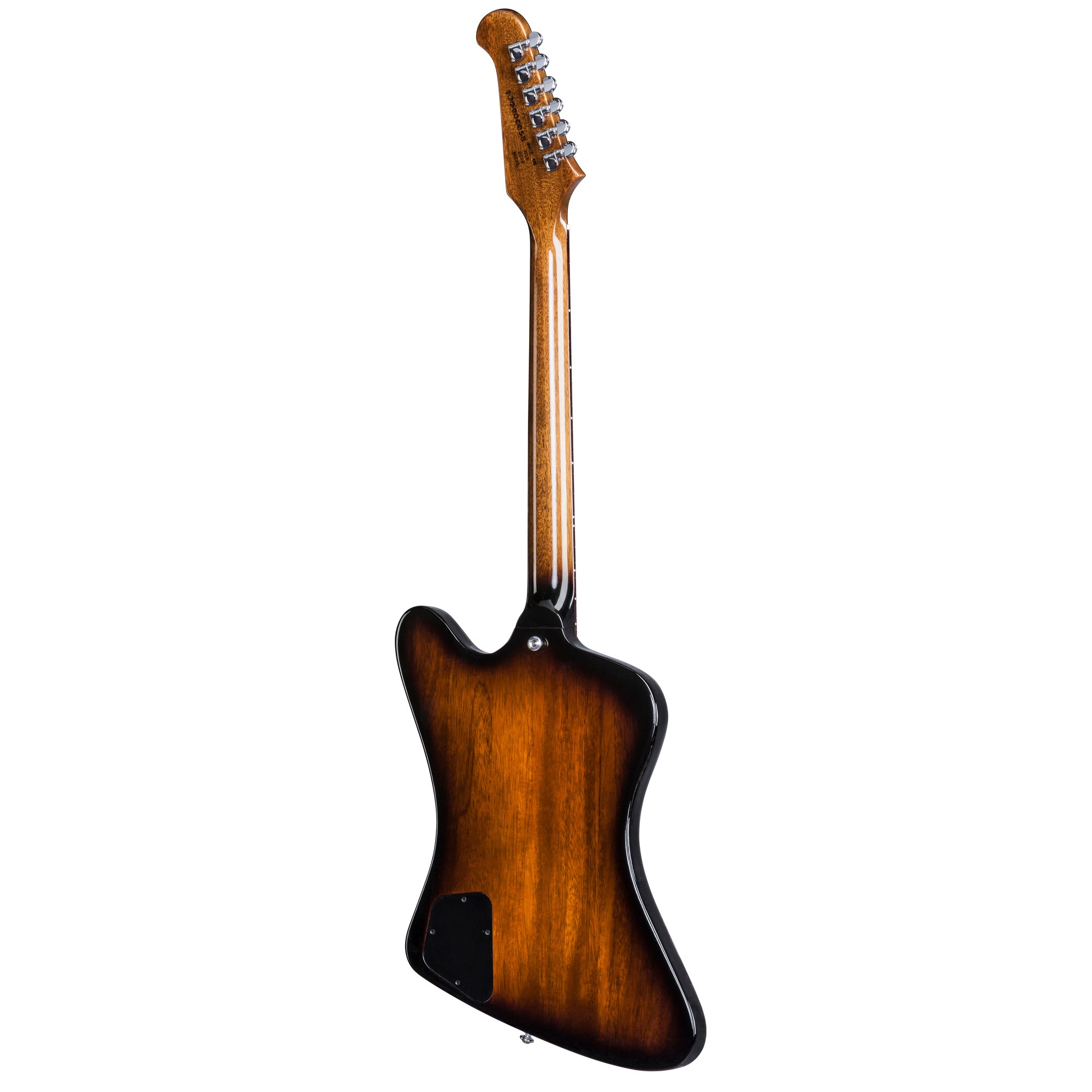 Gibson Firebird Studio T 2017 Vintage Sunburst электрогитара, обновленная, заряженная адреналином, машина для рок-музыки. Производитель обратил особое внимание на то, что важно гитаристам - звучание и комфорт. Гитара имеет обновленной дизайн, прародителем которого стал инструмент, впервые выпущенный в 1963 году. Современный стиль и революционный перфоманс, все это - электрогитара FIREBIRD STUDIO Т 2017. Оригинальная, перевернутая дека Firebird, с обновлёнными компонентами позволяет добиться совершенно революционного звучания. Гитара заряжена парой мощных звукоснимателей, это модели 496R и 496T, цвет гитары винтаж санберст (Vintage Sunburst).