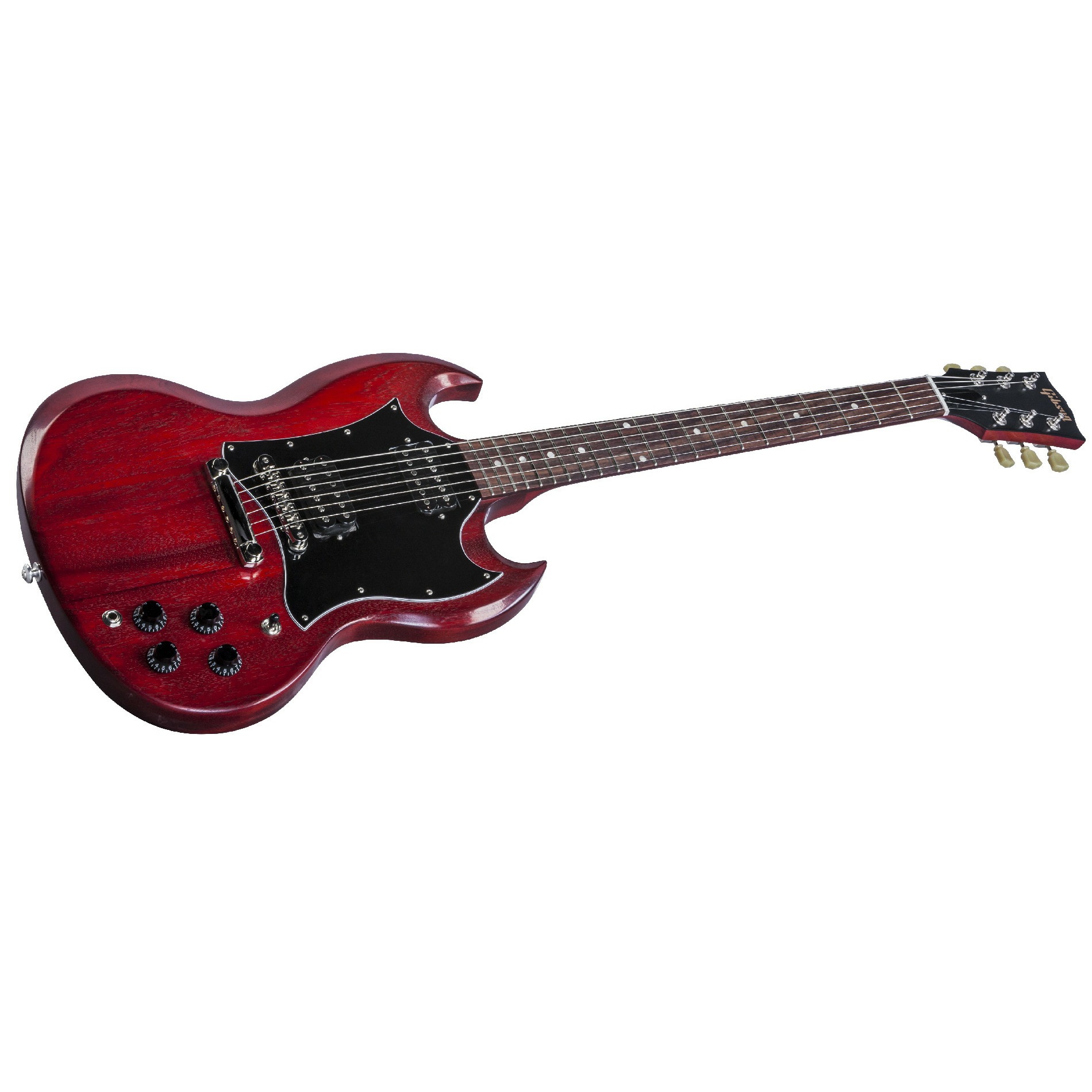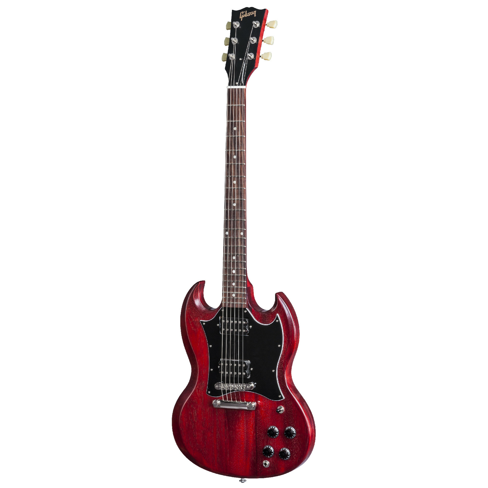 Gibson SG Faded T 2017 Worn Cherry электрогитара - современный инструмент, имеющий состаренный внешний вид. Модель SG Faded T 2017 была создана мастерами Gibson USA таким образом, чтобы Вы увидели в ней своего старого друга, как только взяли инструмент в руки. С новым, более аутентичным покрытием Faded Gloss и никелированной фурнитурой, SG Faded выглядит так, как будто на ней играют уже не первое десятилетие, она идеально лежит в руках, имея форму, в точности подходящую для музыканта. В этой модели прекрасно сочетаются история и современность. В SG Faded сливаются воедино традиции SG, заложенные более пяти десятилетий назад, и инновационные технологии 21-го века, в результате чего был создан потрясающе гибкий, универсальный и удобный инструмент. Сочетание хамбакеров 490R и 490T с магнитами Alnico позволяет получить характерный узнаваемый звук SG, а гриф профиля Slim taper и утолщённой палисандровой накладкой и 22 полированными ладами даёт великолепные ощущения при игре, позволяет легко брать бэнды и играть скоростные соло. Необходимо отметить прекрасное сочетание цена/качество – особенно, если учесть, что перед Вами настоящий Gibson высочайшего качества, произведённый в Соединенных Штатах.