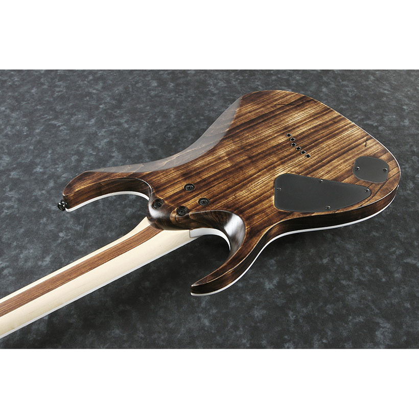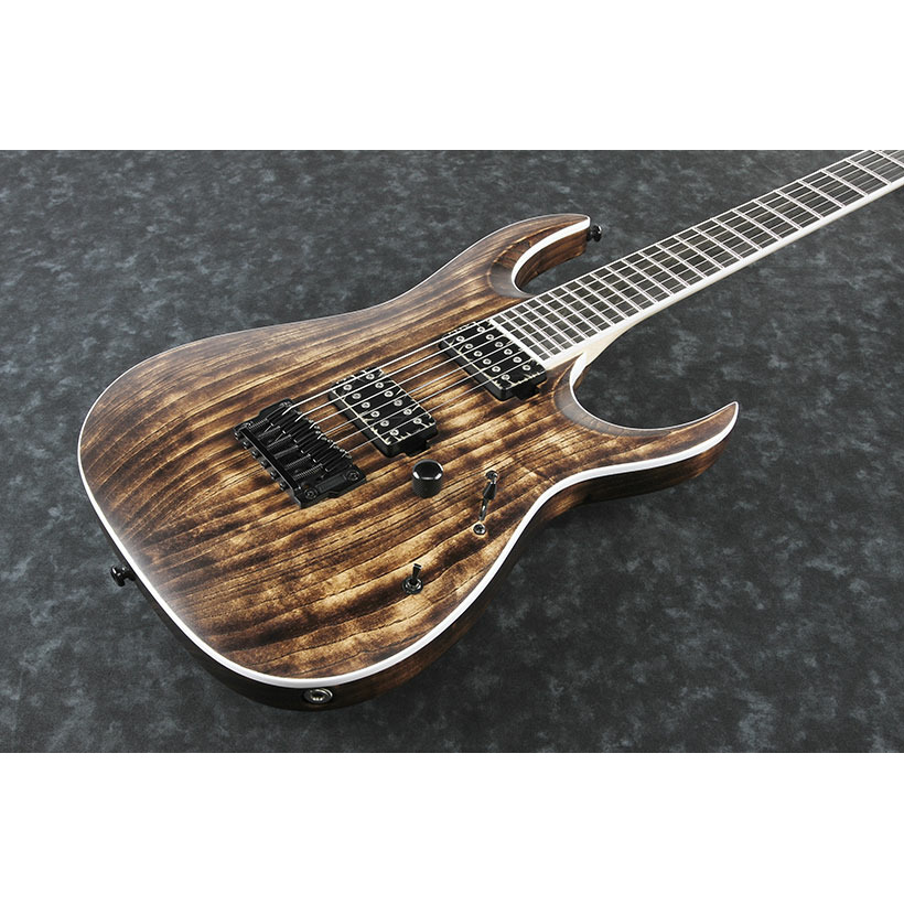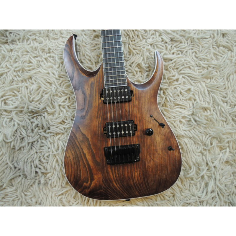 IBANEZ RGAIX6U-ABS IronLabel - шестиструнная электрогитара из серии RGA Iron Label. Модель отличается изящным корпусом узнаваемой формы с двумя вырезами, удобством при игре и мощным плотным звуком, идеально подходящим для тяжелой музыки, рока и металла. Корпус гитары RGAIX6U сделан из древесины ясеня. Гриф Nitro Wizard – тонкий, очень удобный при игре, выполнен из 3 частей клен/бубинга. Такая конструкция отличается высокой прочностью. Накладка - чёрное дерево, без инкрустации. Радиус накладки - 400 мм. Бридж - фиксированный Gibraltar Standard II, он отлично передает вибрацию струн корпусу и надёжно держит строй. Звукосниматели - два мощных пассивных хамбакера Bare Knuckle Aftermath открытого типа, с ручной обмоткой, керамическими магнитами у бриджа и Alnico у грифа. Звукосниматели выдают мощные низкие частоты и усиленную середину, четкие и великолепно артикулированные верха. Переключатель звукоснимателей - 3-позиционный. Для настройки звука предусмотрен один регулятор громкости и переключатель уровня выходного сигнала. Представленная модель стильно выглядит в цвете Antique Brown Stained с покрытием, выгодно демонстрирующим красивую фактуру дерева, с головой грифа в цвет корпуса и черной фурнитурой. На гитаре установлены струны толщиной .010 - .046.
