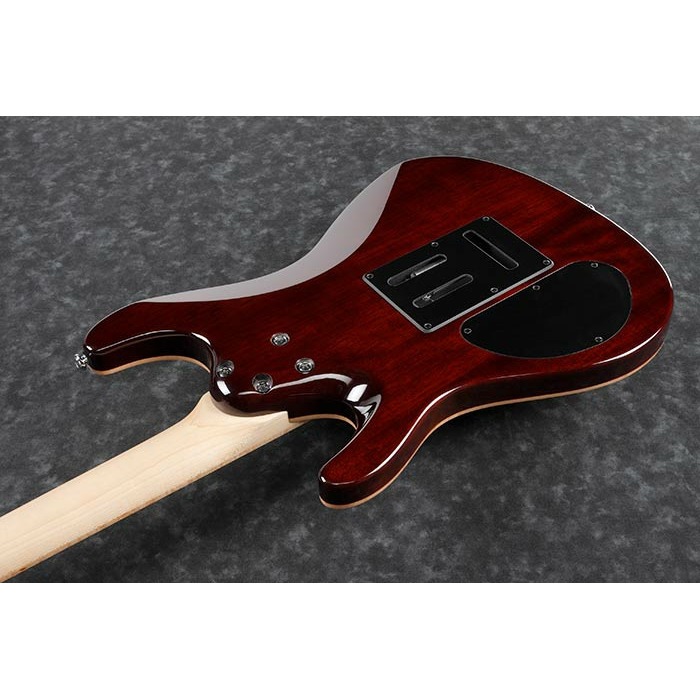 IBANEZ SA460QMW-TQB – шестиструнная электрогитара из модельного ряда SA Standard 2020 года. Это гибкий, многофункциональный инструмент, настоящий музыкальный хамелеон, который отлично проявит себя практически в любых музыкальных стилях, от блюза до самого тяжелого металла. Корпус инструмента выполнен из окоуме с красивым выпуклым топом из волнистого клена. Он достаточно легкий для комфорта и достаточно плотный для того, чтобы получить отличные тембральные характеристики и превосходный сустейн. Гриф – кленовый. Накладка из черного дерева позволяет получить впечатляющий сустейн, дает плотные низкие и средние частоты, характерную атаку на высоких частотах. На грифе 22 лада с инкрустацией точками из абалона. Особенность инструмента – конфигурация звукоснимателей, которая позволяет получить отлично сбалансированный звук, широкий динамический диапазон и гибкость в настройках. Это синглы Resolution у грифа и в средней позиции плюс хамбакер Quantum у бриджа. Переключатель – пятипозиционный. Элементы управления включают также регуляторы громкости и тембра. Бридж – тремоло T102. Модель SA460QMW представлена в эффектном цвете «Tropical Squash Burst» с головой грифа в цвет корпуса, хромированной фурнитурой.