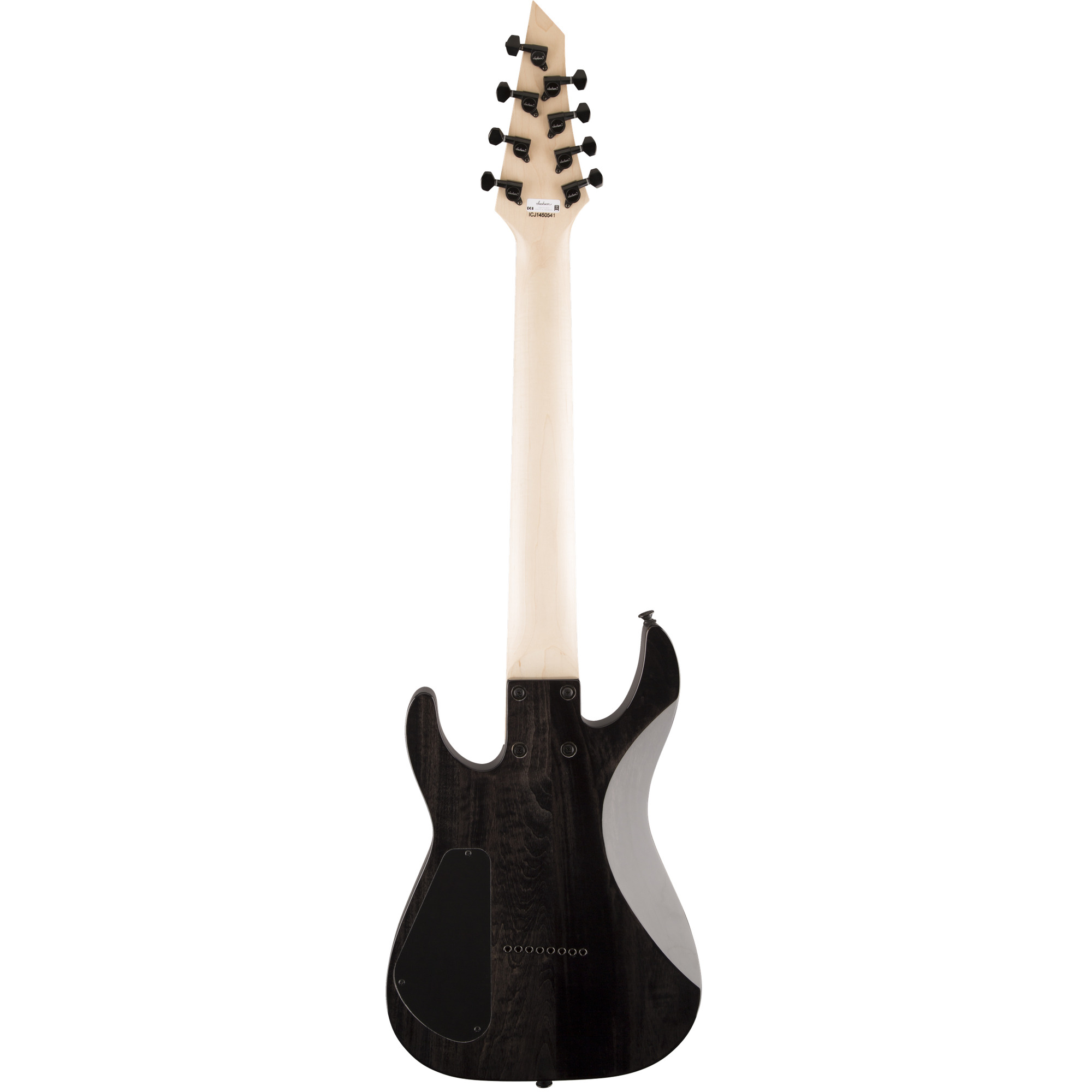 JACKSON JS32-8Q DINKY- инструмент с декой формы Dinky™ Arch Top из липы с красивым топом из волнистого клена. Корпус прозрачного черного цвета с глянцевым покрытием дополнен головой грифа Jackson® AT в цвет корпуса с контрастным белым логотипом «Jackson» и черной фурнитурой. Привинченный гриф с графитовым усилением выполнен из клена.