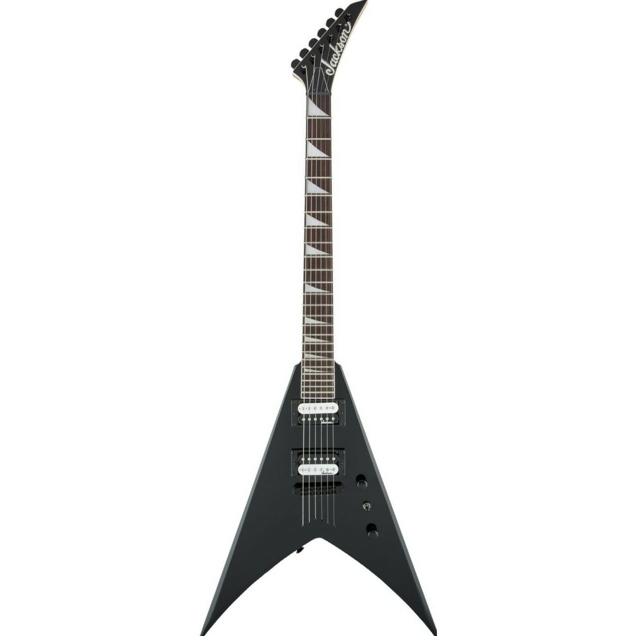 JACKSON JS32T King V – шестиструнная электрогитара, модель из бюджетной линейки JS Series. Эта модель в корпусе эффектной формы King V обладает прекрасным звуком, узнаваемым дизайном. Корпус JS Series King V™ JS32T выполнен из древесины тополя. Гриф – из цельного куска клёна, привинченный, с графитовым усилением, обеспечивающим максимальную стабильность. Накладка – из амаранта, переменного радиуса 12-16 дюймов. На грифе 24 лада джамбо, инкрустированных перламутровыми «акульими плавниками». Голова грифа - Jackson® Pointed (6 в ряд). Четкий, чистый звук инструмента, при этом достаточно плотный и мощный для современных музыкальных направлений, формируют два хамбакера собственного производства Jackson® с высоким выходным уровнем черно-белого дизайна Zebra. Переключатель – 3-позиционный, регуляторы – громкость и тембр. Фиксированный бридж Jackson® TOM-Style (струны сквозь корпус) надежно держит строй. Модель JS Series King V™ JS32T доступна в двух вариантах цветового исполнения. Представленная гитара – стильного черного цвета с глянцевой отделкой, головой грифа в цвет корпуса и черной фурнитурой.