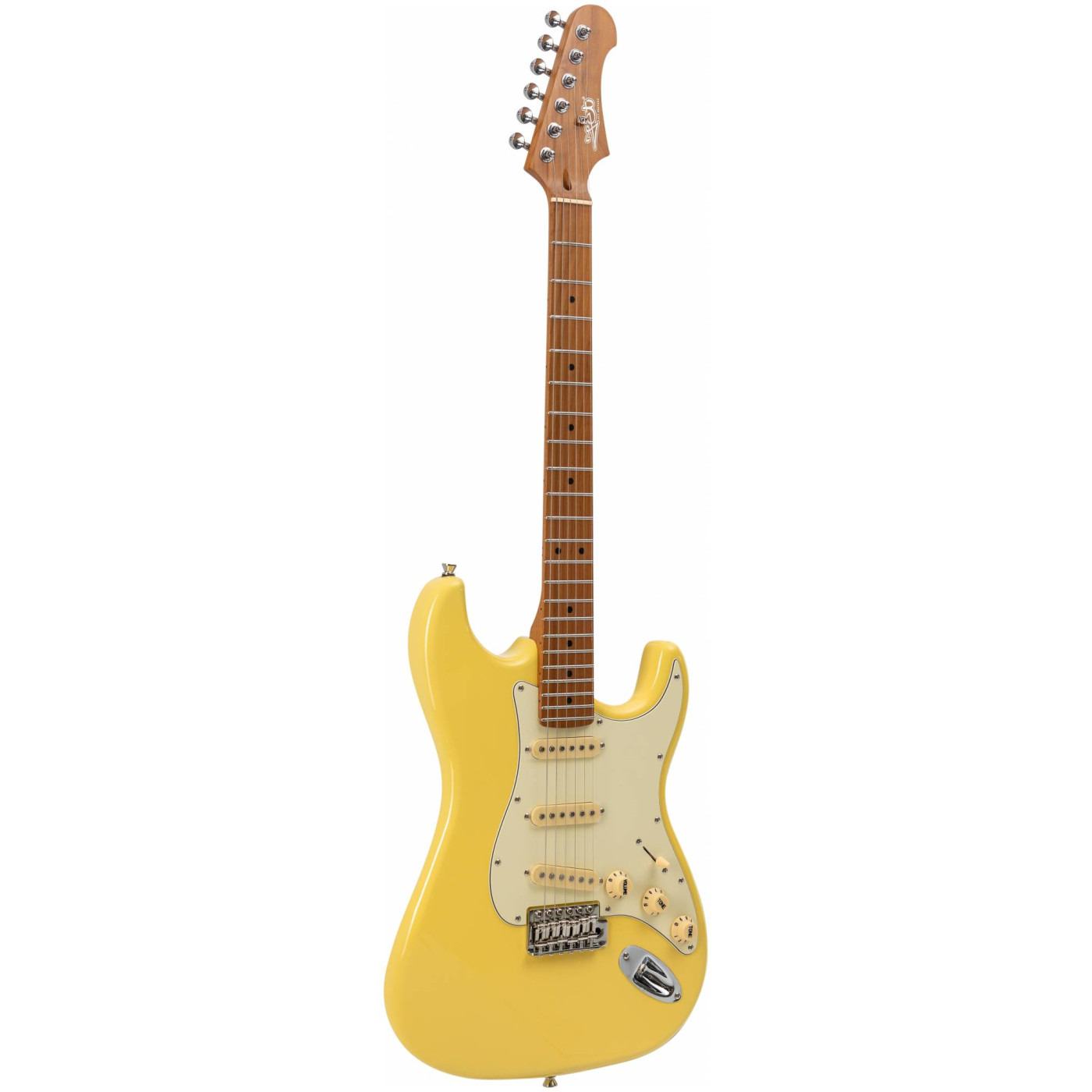JET JS-300 VYW это инструмент в классической и самой популярной форме корпуса - Стратокастер. У инструментов JS-300 профиль грифа - Modern C. Это наиболее распространенный современный профиль грифа, у таких грифов удобный овальный профиль, который подходит для большинства стилей игры.