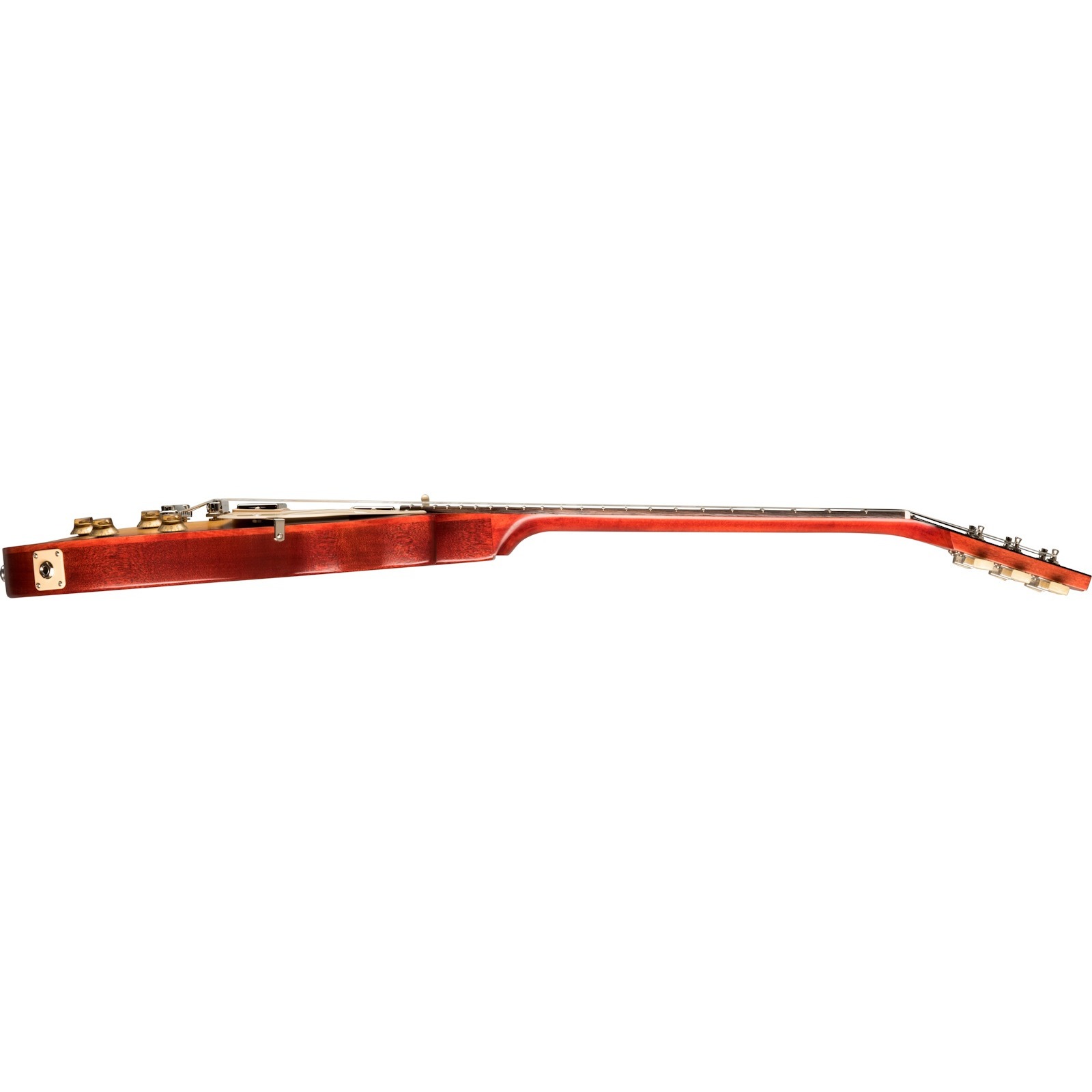 GIBSON 2019 LES PAUL TRIBUTE SATIN ICED TEA - это шестиструнная электрогитара, имеющая несколько облегченную деку. Этот инструмент обладает шикарным стилем и премиальным, классическим звучанием. Гитара под правую руку музыканта. Цвет гитары - санберст. Этот классический инструмент полностью оптимизирован к современным музыкальным требованиям самых изысканных музыкантов. Дека гитары сделана из махагони с изящным кленовым топом. Гриф из классического махогани с накладкой из палисандра. Количество ладов грифа - 22. Мензура инструмента классическая - 24,75". На деку гитары установлено два мощных хамбакера, спецификация Н/Н, модели - 490R neck & 498T bridge pickups. Ручки настройки звука и тембра - 2 vol, 2 tone, классический 3-позиционный переключатель звукоснимателей. Бридж фиксированный Tune-O-Matic, с фиксированным струнодержателем Stop Bar. Фурнитура инструмента никелирования. Электрогитара поставляется в фирменном чехле/кейсе.