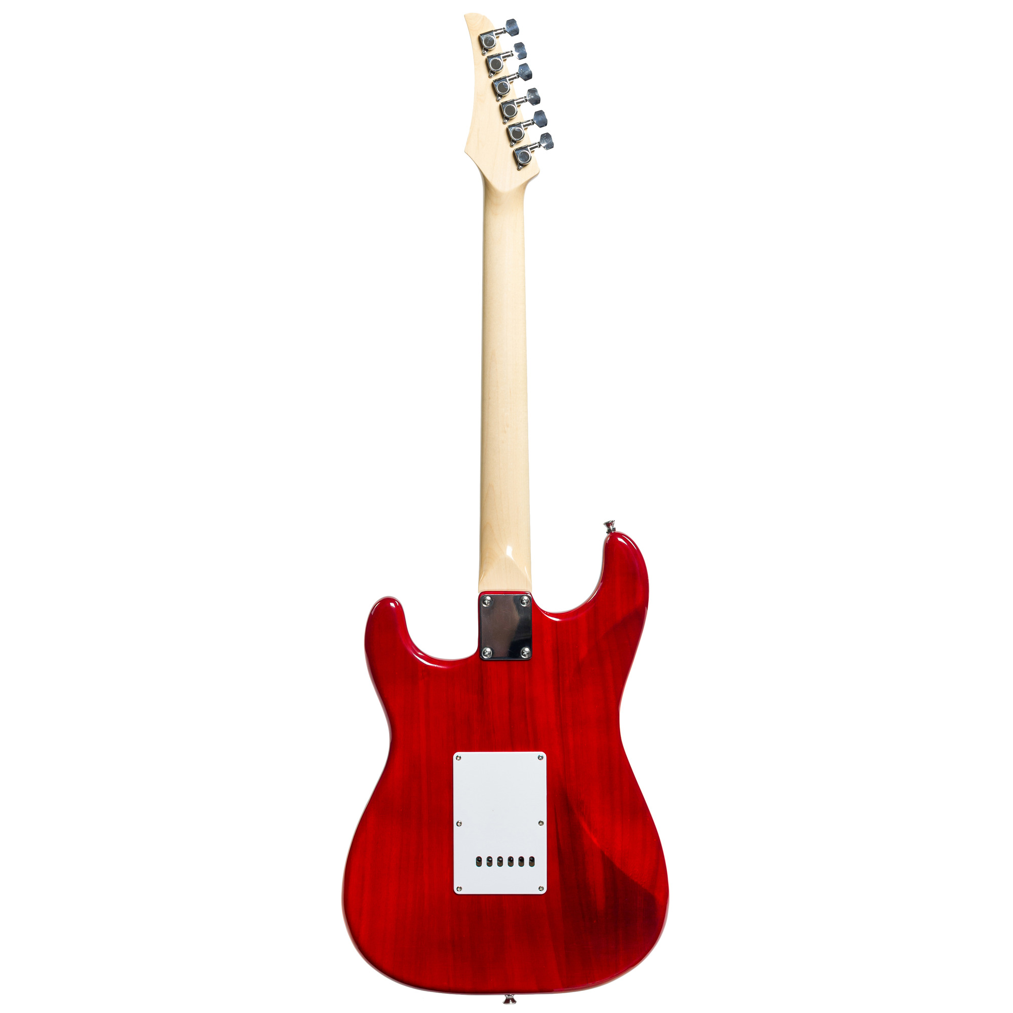 Rockdale DS-ST112-TR - это шестиструнная электрогитара начального уровня. Электрогитара типа стратокастер (Stratocaster) ROCKDALE DS-ST112-TR станет хорошим приобретением для начинающих гитаристов. В инструментах этой серии производитель реализовал все особенности стиля электрогитар подобного типа, включая их аутентичное звучание. Электрогитара оснащена тремя звукоснимателями типа «сингл», установленными в бридже, среднем и нековом положении (S-S-H). При помощи 5-позиционного переключателя возможно выбрать необходимый звукосниматель (или комбинацию). Дополнительно регулировка звука осуществляется при помощи общей ручки громкости и отдельных ручек тона. Одна ручка для бриджевого и среднего, вторая для некового звукоснимателя. На гитаре установлены литые колки и тремоло с 6-болтовым креплением. Гриф имеет удобный профиль и традиционно крепится к корпусу четырьмя винтами. Классический дизайн и звучание инструмента придутся по вкусу как начинающим, так и более продвинутым гитаристам.