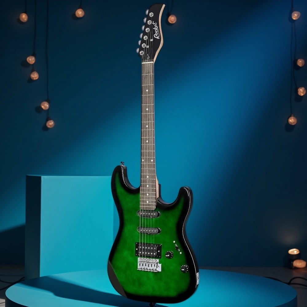 ROCKET EG-1 BGR – мгновенно узнаваемой формы электрогитара с современной функциональностью. У этого стратокастера корпус изготовлен из ольхи и оборудован H/S/S конфигурацией звукоснимателей, что дает мощное рок звучание, а также искрящиеся чистые тона. Плюс тремоло бридж позволяет легко добавить вибрато эффект, не повлияв при этом на настройку. Для повышения игрового комфорта и по традиции гриф сделан из клена в «С» профиле и покрыт палисандровой накладкой с 22 гладкими ладами. В общем, эта электрогитара предлагает отличное соотношение цены/качества и является потрясающим стартовым инструментом, а также хорошим подспорьем в качестве резервной гитары для продвинутых гитаристов.