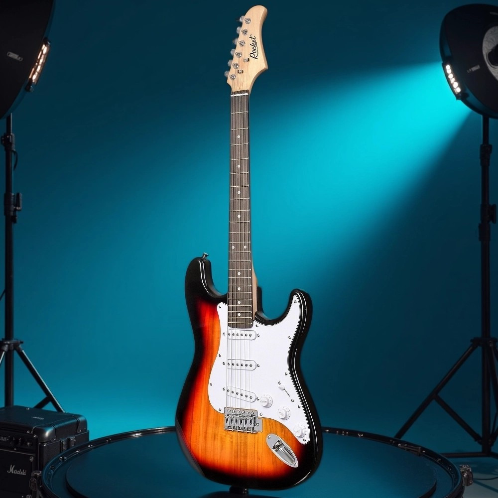 ROCKET ST-01 SB – прекрасный вариант в качестве первой электрогитары или дополнительной, если более дорогую необходимо оставить дома. Она представляет собой классический страт, но по удивительно низкой цене и имеет все его характеристики, включая три сингла, которые выдают «фирменный» тон, превосходный для блюза и рока. Также на ней установлено два регулятора тона, один громкости, и 5-позиционный переключатель, таким образом можно сформировать звук по собственным предпочтениям и добиться звучания легендарных гитаристов. И, конечно же, знаменитые контуры корпуса, обеспечивающие долгие часы комфортного исполнения. С легковесным корпусом из липы, кленовым грифом и палисандровой накладкой, эта электрогитара создана, чтобы дарить вам долгие годы музыкального удовольствия.