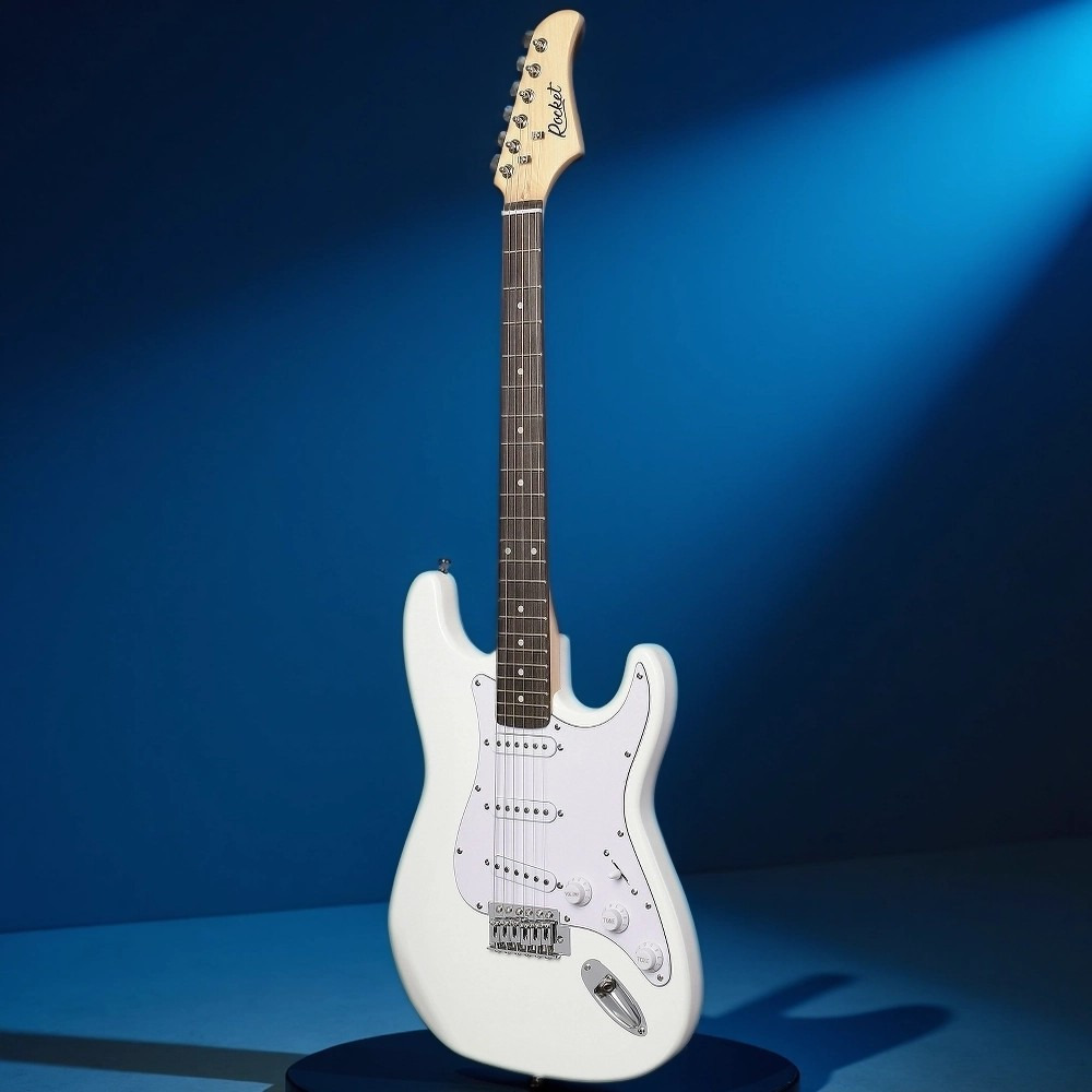 ROCKET ST-01 WH – приносит тон, ощущения и вид легендарного стратокастера. Теперь вы сможете наслаждаться дизайном и звучанием одной из самых знаменитых электрогитар, покоряющих сцену ни одно десятилетие, по невероятно низкой цене. Кленовый гриф достаточно комфортабельный, что дает возможность быстрого исполнения, при этом липовый корпус вмещает три превосходно звучащих сингла, которые в свою очередь предлагают самые популярные гитарные тона. В сочетании с 5-позиционным переключателем, одним регулятором громкости и двумя тона, вы получите звучание легендарных страт гитаристов, таких как Джимми Хендрикс, Ричи Блэкмор и других. Более того, эта удивительная электрогитара поставляется не одна, а с медиатором, шнуром джек-джек и запасными струнами, таким образом, если вы начинающий гитарист, у вас будет все необходимое.