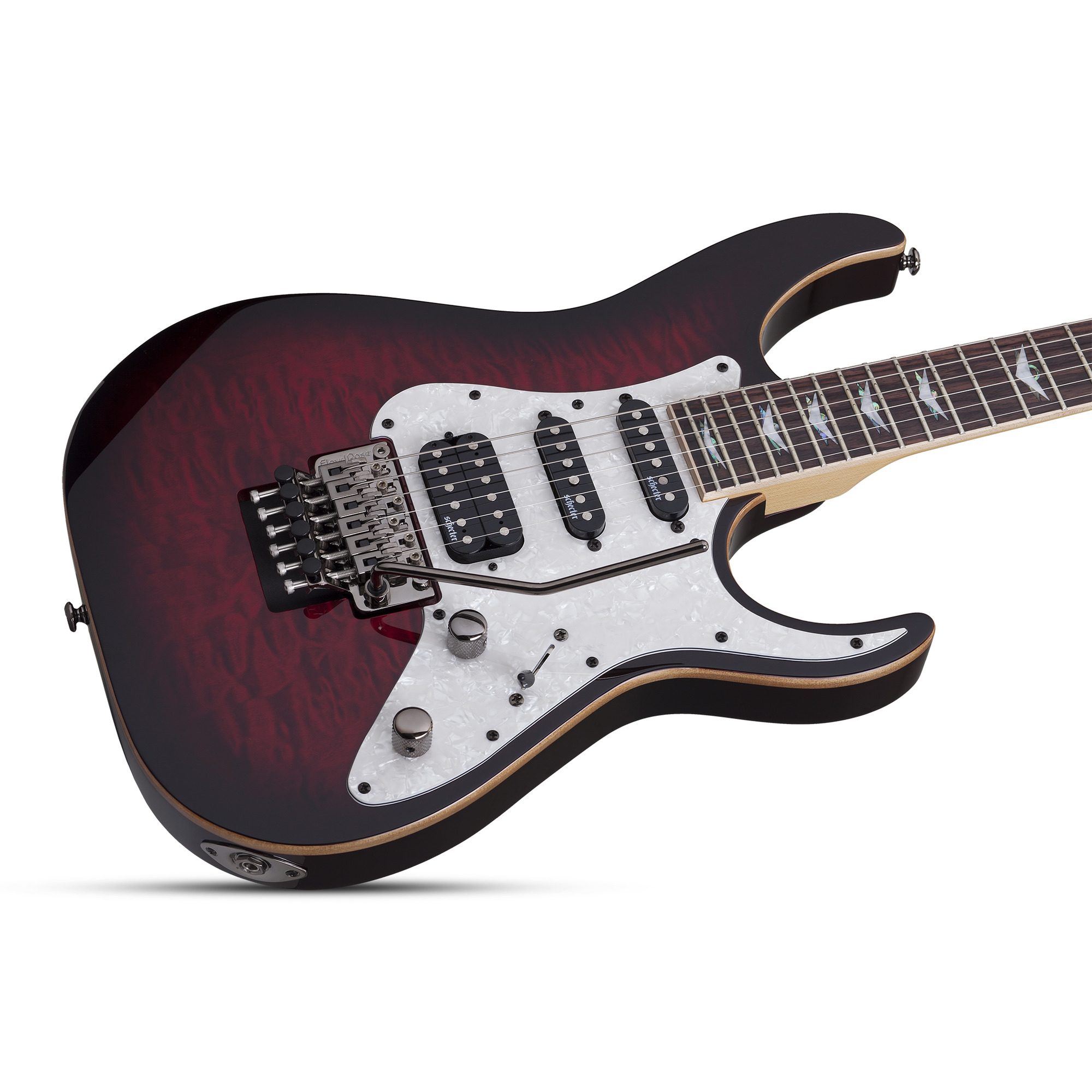 Установленная на гитаре электроника позволяет получить различные вариации звучания: здесь есть два сингла Schecter Diamond Single Coil, хамбакер Schecter Diamond Plus в бриджевой позиции, пятипозиционный переключатель звукоснимателей, ручка тона, ручка громкости и отсечка. Последняя добавляет ещё два режима к и без того широким возможностям. А для любителей рычага, на гитаре установлен надёжный Floyd Rose Special 'Hot Rod' известная «запирающая» система тремоло, которая прекрасно держит стабильный строй.