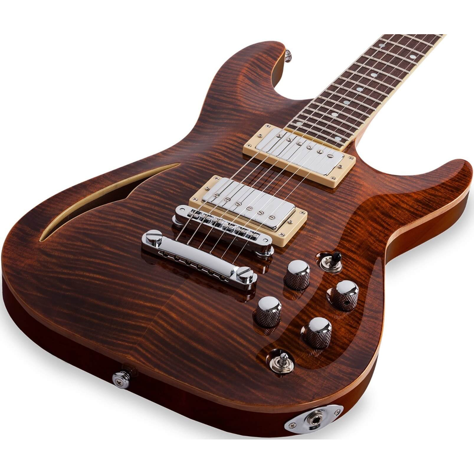 SCHECTER C-1 E/A - это универсальная электрогитара с пьезо датчиком в бридже. Корпус гитары изготовлен из красного дерева, гриф из 3-х кусков красного дерева. Накладка грифа - черное дерево, с инкрустацией в виде перламутровых точек. На гитаре установлены 24 лада X-Jumbo. За формирование звука магнитных датчиков отвечают регулятор громкости и регулятор тона с Push-Pull, а также переключатель звукоснимателей. Для регулировки пьезо звукоснимателя предусмотрен регулятор громкости и тона. На гитаре установлены надежные колки Grover, магнитные звукосниматели Schecter Diamond Plus. В качестве струнодержателя используется пьезо-бридж Fishman Powerbridge.