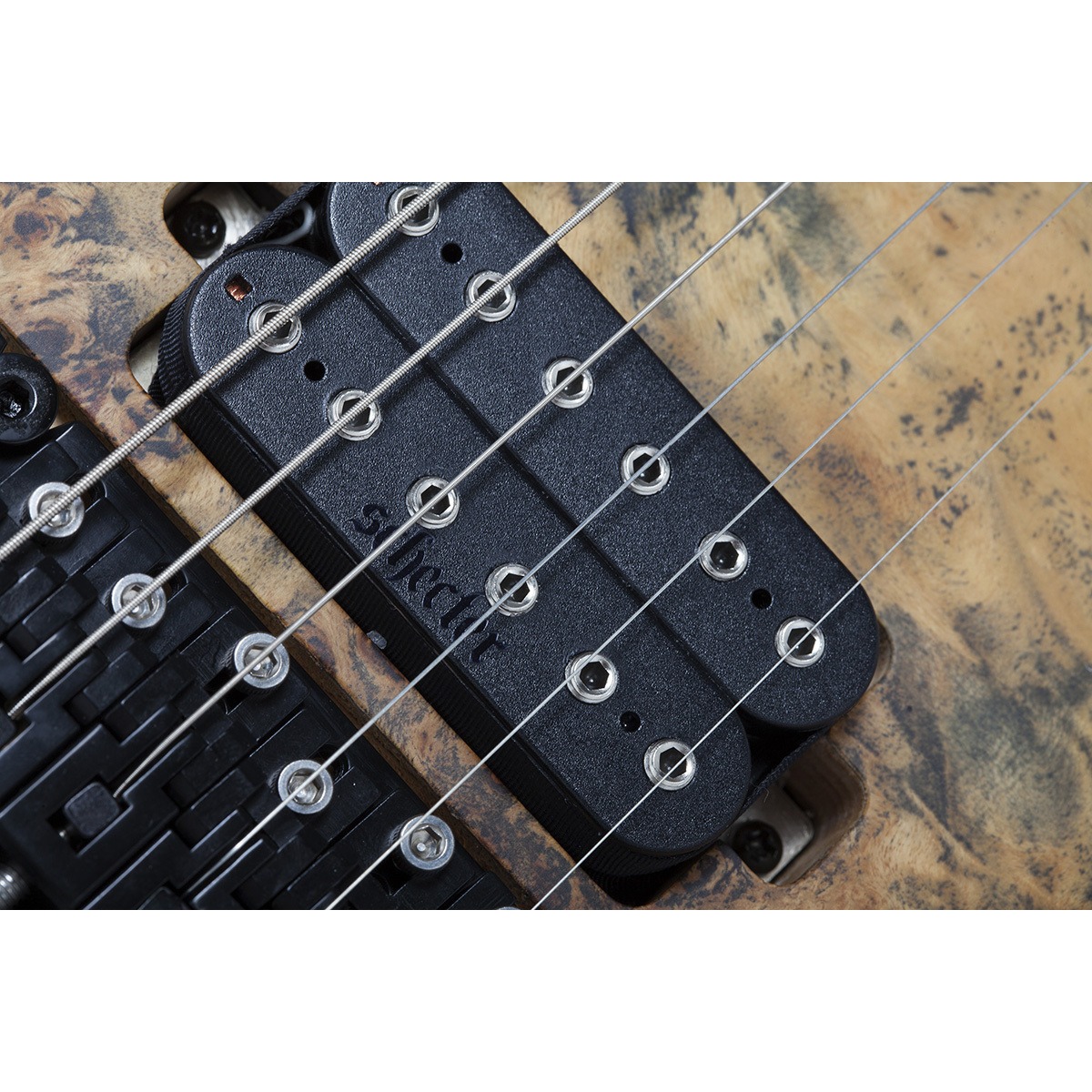 Изящные, резкие, агрессивные - так можно охарактиризовать "убийственные" гитары из серии Reaper. Корпус из болотного ясеня в сочетании с топом из капа, ультратонким профилем грифа, и самого грифа, выполненного из клена/ореха с накладкой из черного дерева, вкупе обеспечивают резонирующую тональность и притягательный внешний вид. Широкий контур корпуса и ультра-доступная конструкция вклеенного грифа гарантируют комфорт при игре даже при самых требовательных настройках. На борту этого зверя установлены мощные звукосниматели Schecter Diamond Decimator, прорезающиеся сквозь микс, и достаточно универсальные практически для любой площадки, а так же бридж - Floyd Rose 1500 серии, колки Schecter и контрастная фурнитура в черно-хромированном исполнении.
