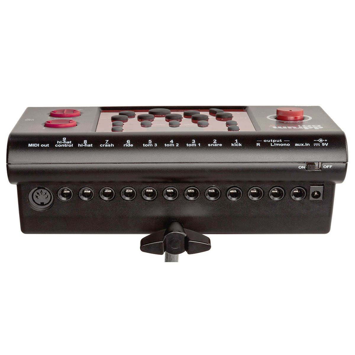 На задней панели модуля есть MIDI-выход, два аудиовыхода, аудиовход для внешнего источника звука и девять триггерных входов (все на джеках): семь для пэдов (включая три тарелочных и один для бас-барабана) и один для педали хета. Также на задней панели расположены гнездо для штатного адаптера питания (9 В), выключатель питания. На боковых панелях имеются порт USB (только для MIDI-данных), выход для наушников (джек) и регулятор уровня наушников и линейного выхода.