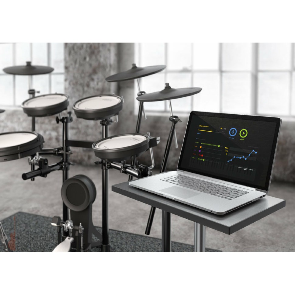Roland TD-17KVX + MDS-COM поддерживает функцию Coach, которая позволяет заниматься с интересом, развивать скорость, выносливость рук и чувство ритма. Присутствует возможность заниматься под любимые композиции, воспроизводя их с SD-карты или подключив смартфон через Bluetooth к модулю ударной установки, на котором предусмотрена специальная полка для смартфона. А с помощью записи вашего исполнения по USB-MIDI напрямую в компьютер, можно легко анализировать технику исполнения, подмечать ошибки и развиваться. Ведь при обучении так важно слышать себя со стороны и Roland TD-17KV даёт вам такую возможность.