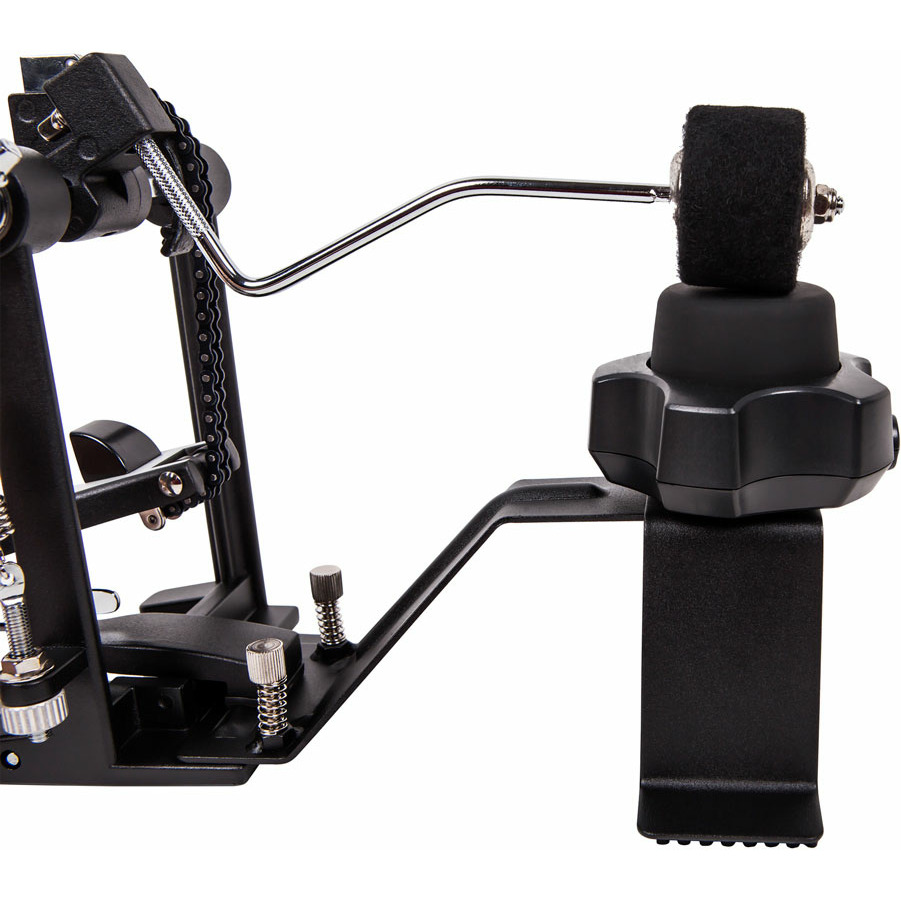 Одним из главных достоинств SKD130-Mesh является двухзонный сеточный пэд малого барабана диаметром 8", обеспечивающий невероятно реалистичные ощущения при игре. Помимо этого ударная установка оснащена тремя 7,5" пэдами томов, 8" пэдом хай-хета и треугольными пэдами райда и креша с функцией быстрого глушения. Особый дизайн колотушки и пэда бас-барабана дает возможность использовать любую педаль и гарантирует естественный отскок колотушки.