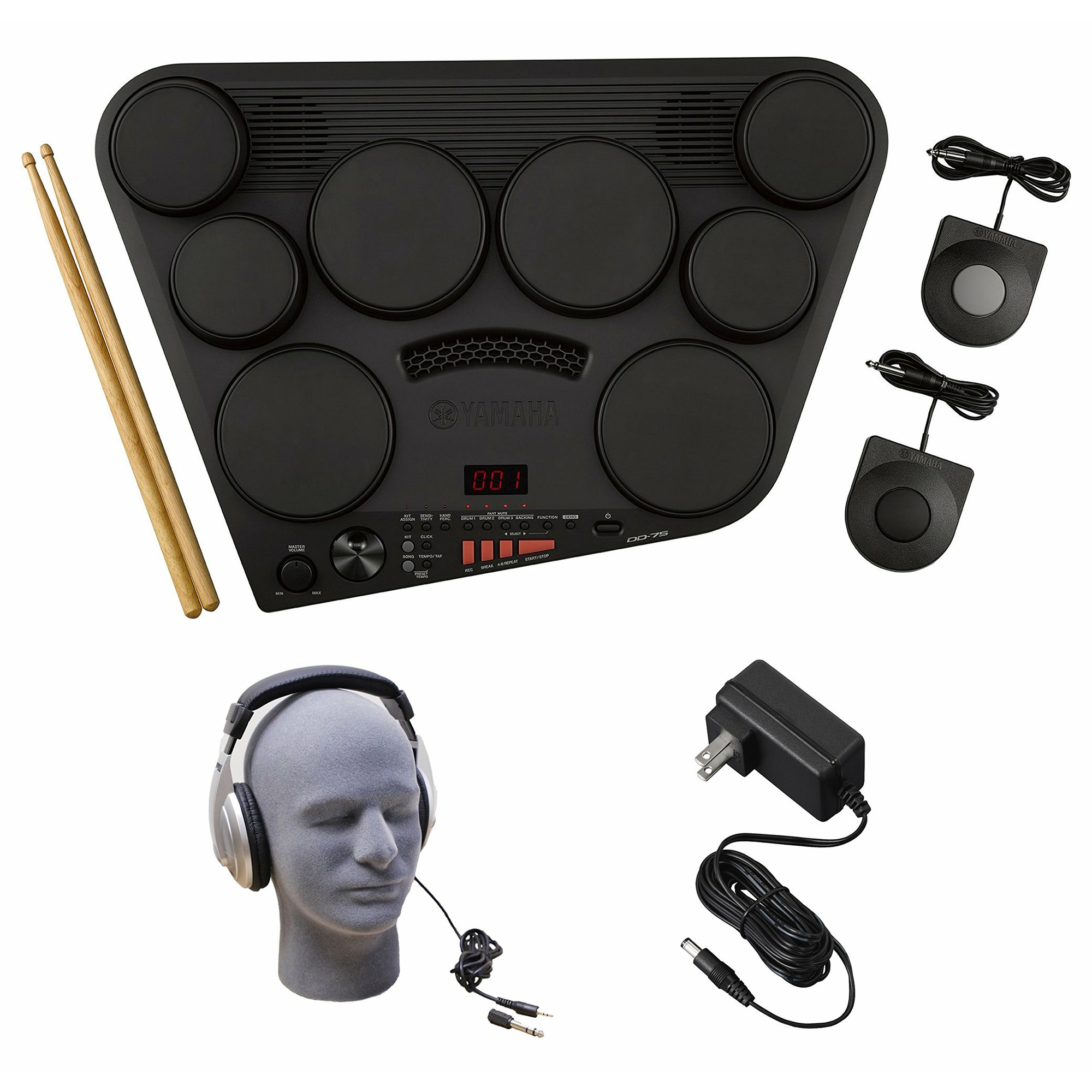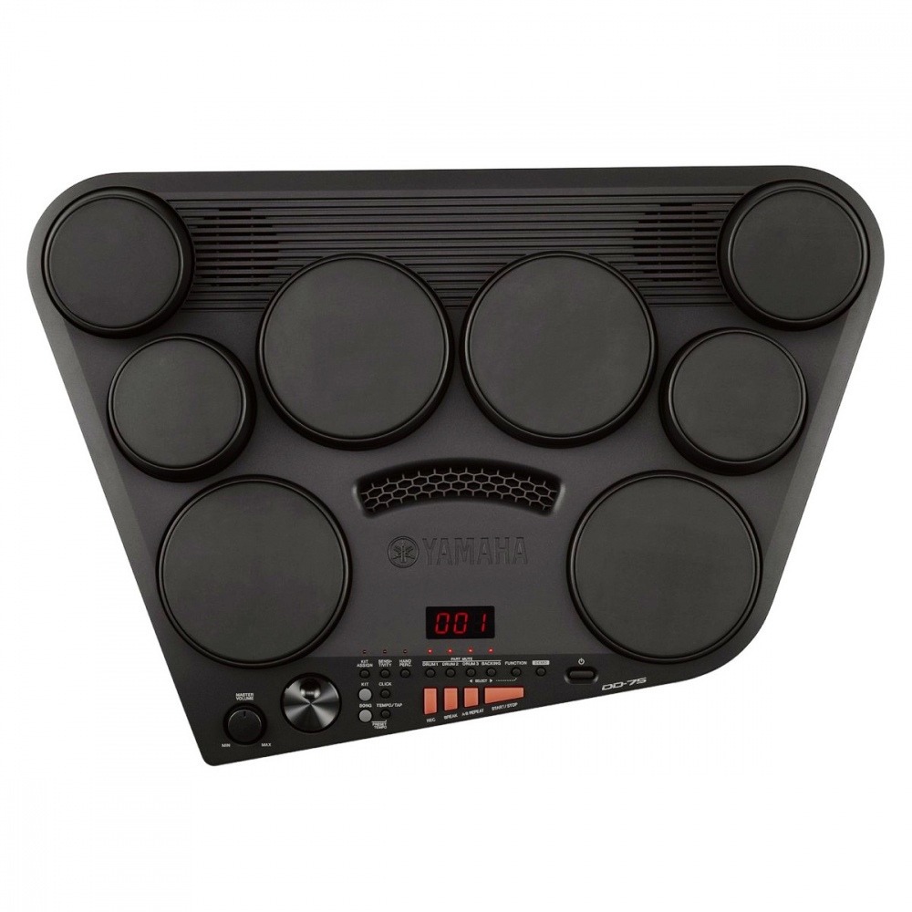 YAMAHA DD75 обладает восемью пэдами, чувствительными к касаниям разной силы. Благодаря этому звук может быть легким или более глубоким в зависимости от силы удара или хлопка. Пэды реагируют как на руки, так и на барабанные палочки, поэтому позволяют воспроизвести звук не только обычных акустических барабанов, но и ударных инструментов, присущих культуре Ближнего Востока, Индии, Китая.