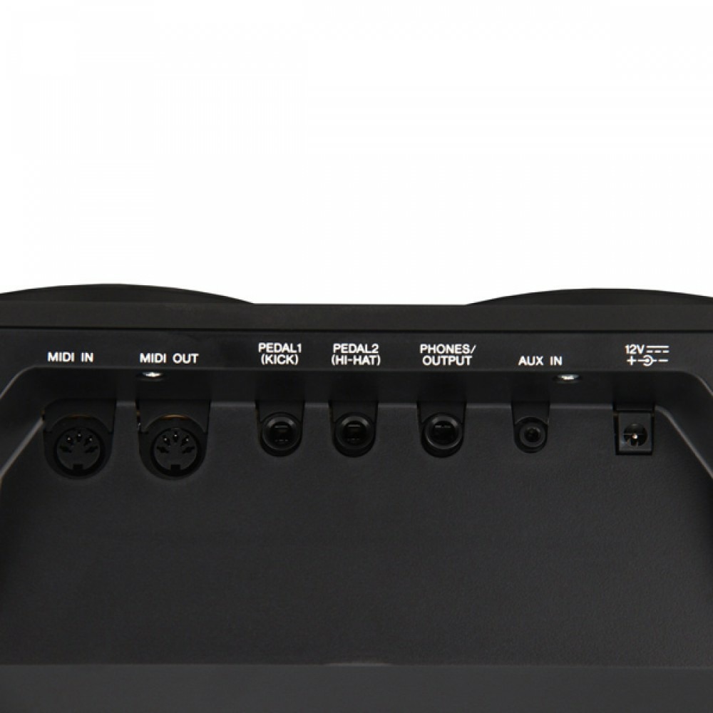 Встроенных динамиков два, они позволяют добиться высокой громкости, поэтому если вы не имеете усилителя под рукой и запланировали выступление на улице города или решили взять барабанную установку на природу, чтобы развлечь друзей, вы можете не волноваться: она справится с поставленной задачей и без дополнительных устройств. Некоторые группы и отдельные исполнители применяют электронные барабанные установки для игры в клубах и небольших залах, особенно это актуально для кафе и ресторанов, где нет места, чтобы разместить акустическую установку.