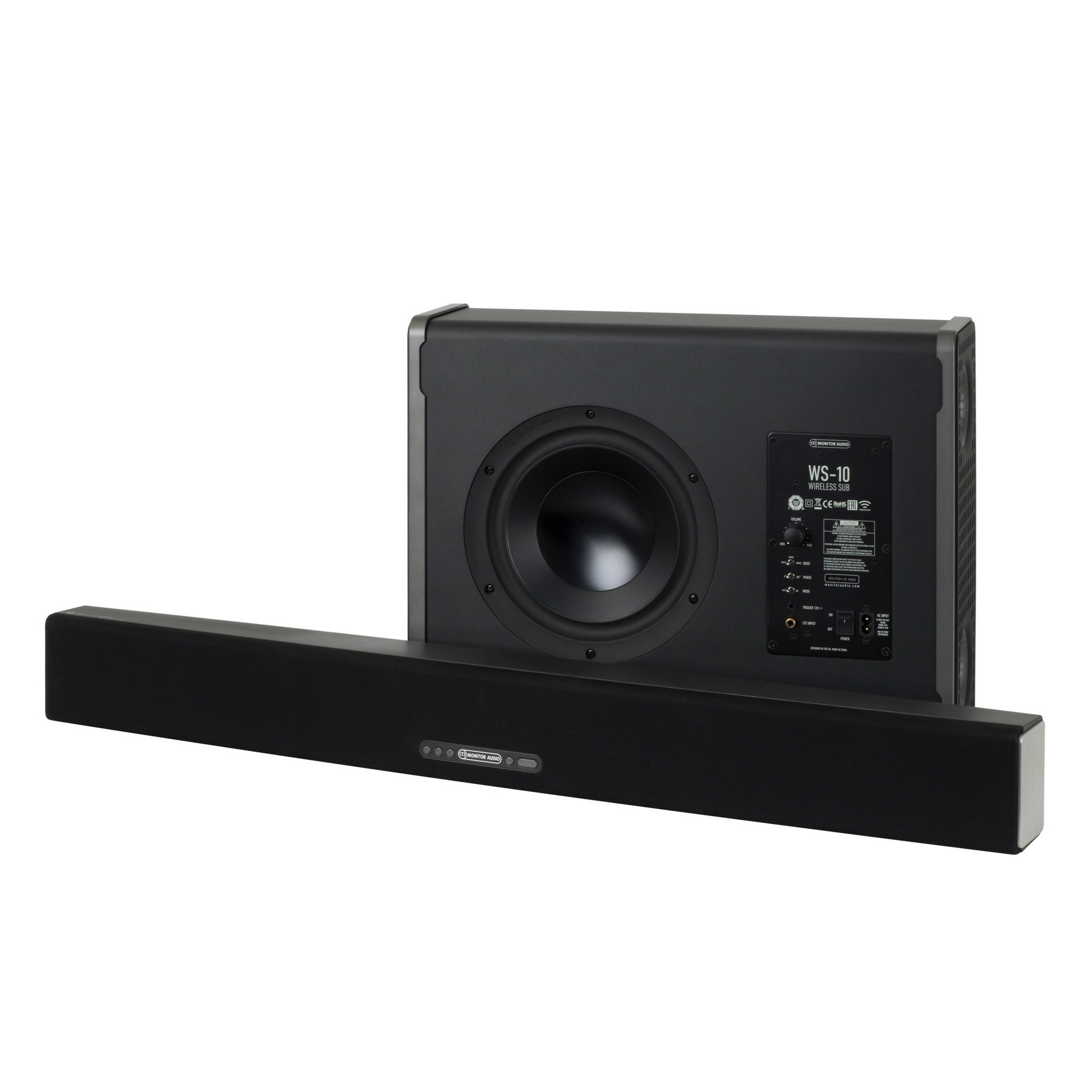 Особенностью данной модели является форм-фактор – Monitor Audio WS-10 выполнен в плоском корпусе. Его можно расположить на полу, на стойке рядом с другими AV-компонентами или, например, вертикально вплотную к стене. Так как низкочастотный динамик в сабвуфере находится на нижней панели, во всех случаях распространение басов в комнате получится равномерным. Monitor Audio WS-10 обладает приятным внешним видом и качественной внешней отделкой.