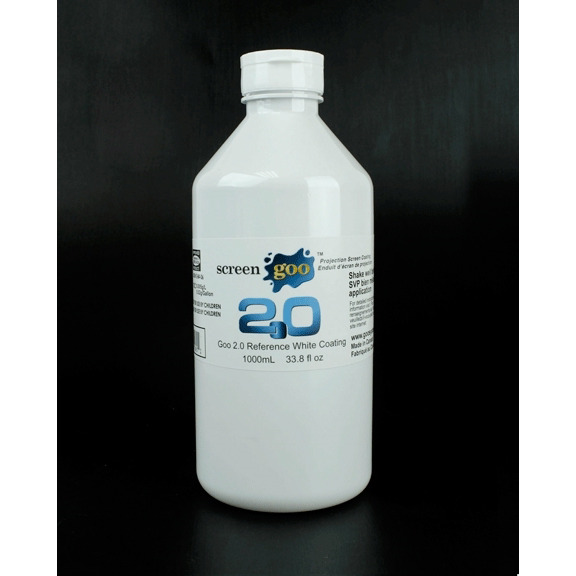 Goo 2.0 Reference White 1.0 1000mL – финишное покрытие белого цвета (100 %). Наилучшим образом подходит для помещений с полным затемнением и проектором не менее 130 ANSI-люмен на 1 кв.м. Объем 1 литр.