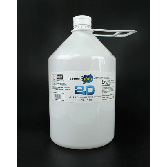 Goo 2.0 Reference White 1.0 3.78 L – финишное покрытие белого цвета (100 %). Наилучшим образом подходит для помещений с полным затемнением и проектором не менее 130 ANSI-люмен на 1 кв.м. Объем 3,78 литра.