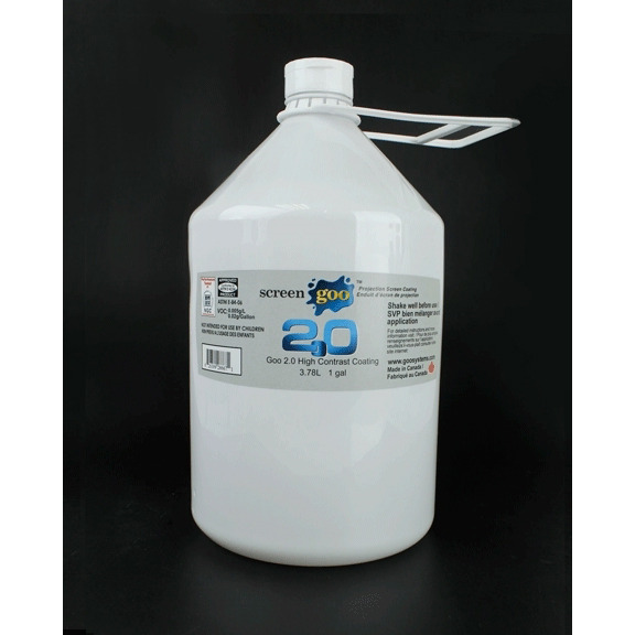 Goo 2.0 High Contrast 0.85 3.78 L – финишное покрытие светло-серого цвета (85 % белого). Наилучшим образом подходит для помещений с умеренным рассеянным освещением и проектором не менее 275 ANSI-люмен на 1 кв.м. Объем 3,78 литра.