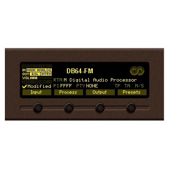 Устройство DB64-FM подходит для всех LPFM и оснащено 4-х полосным процессором с системой Fidelity и Sound Impact System, так что оно не ставит под угрозу качество звука. Среди его разнообразных функций - ограничитель искажений, управляемый FM, аналоговые и цифровые аудиовыходы, два независимых композитных выхода MPX, а также его способность обнаруживать потерю сигнала и переключаться на резервный источник. Автоматические уведомления отправляются при вводе или изменении настроек по электронной почте или SNMP.