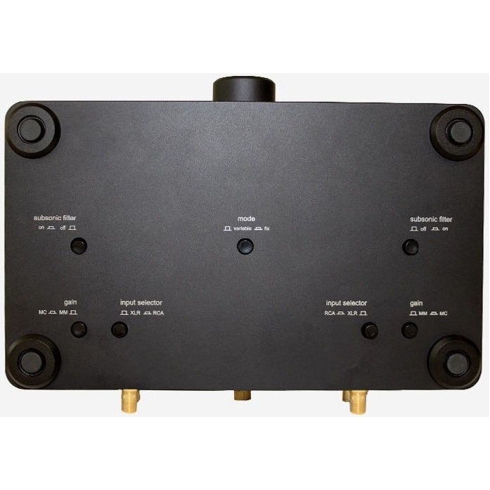 Модель представляет собой универсальное устройство, которое обладает полностью балансной схемотехникой и может работать как с MM-, так и с MC-картриджами. Для выбора настроек под нужный тип головки звукоснимателя на дне корпуса имеются два переключателя (по одному на каждый канал). Там же находится переключатель (установлен в каждом канале), который активирует инфразвуковой фильтр, позволяющий убрать низкочастотный шум, возникающий при воспроизведении гнутых или коробленых виниловых дисков.