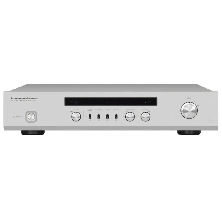 E-07 оснащен функцией артикуляции, которая использует ток сигнала воспроизводимой пластинки для размагничивания картриджа или MC-трансформатора, переключателем низких частот, который подавляет колебания низкочастотного динамика за счет снижения низких частот, вызванных деформацией пластинки, переключателем монорежима, который удобен при воспроизведении монофонических записей, и переключатель инверсии фазы на передней панели, который изменяет фазу сбалансированного выхода в соответствии с подключенным устройством.Комплектация: