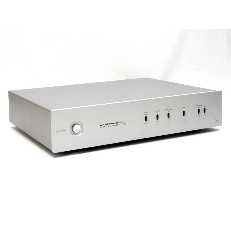Аппарат взял все лучшее от своего предшественника с точки зрения дизайна и конструкции, включая красивый корпус с алюминиевой фронтальной панелью и антивибрационными ножками, размеры которого приближаются к габаритам стандартных компонентов. Одно из главных отличий нового фонокорректора от предыдущей модели заключается в наличии на его тыльной стороне двух блоков DIP-переключателей (по одному для каждого канала). С их помощью открывается доступ к тонкой настройке параметров Luxman E-250 в соответствии с типом и характеристиками выбранной головки звукоснимателя. Доступна коррекция емкостной нагрузки (0/100/220/320 пФ), а для MM-картриджей можно выставить входной импеданс в 34, 47, 56 и 100 кОм.
