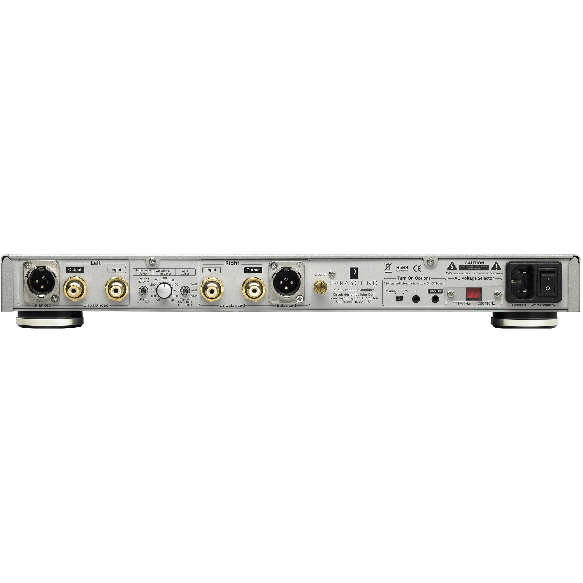Фонокорректор Parasound JC3 Jr. отражает продуктивное сотрудничество с легендарным дизайнером Vendetta Джоном Кёрлом, а также Карлом Томпсоном, истинным кудесником по части печатных плат.